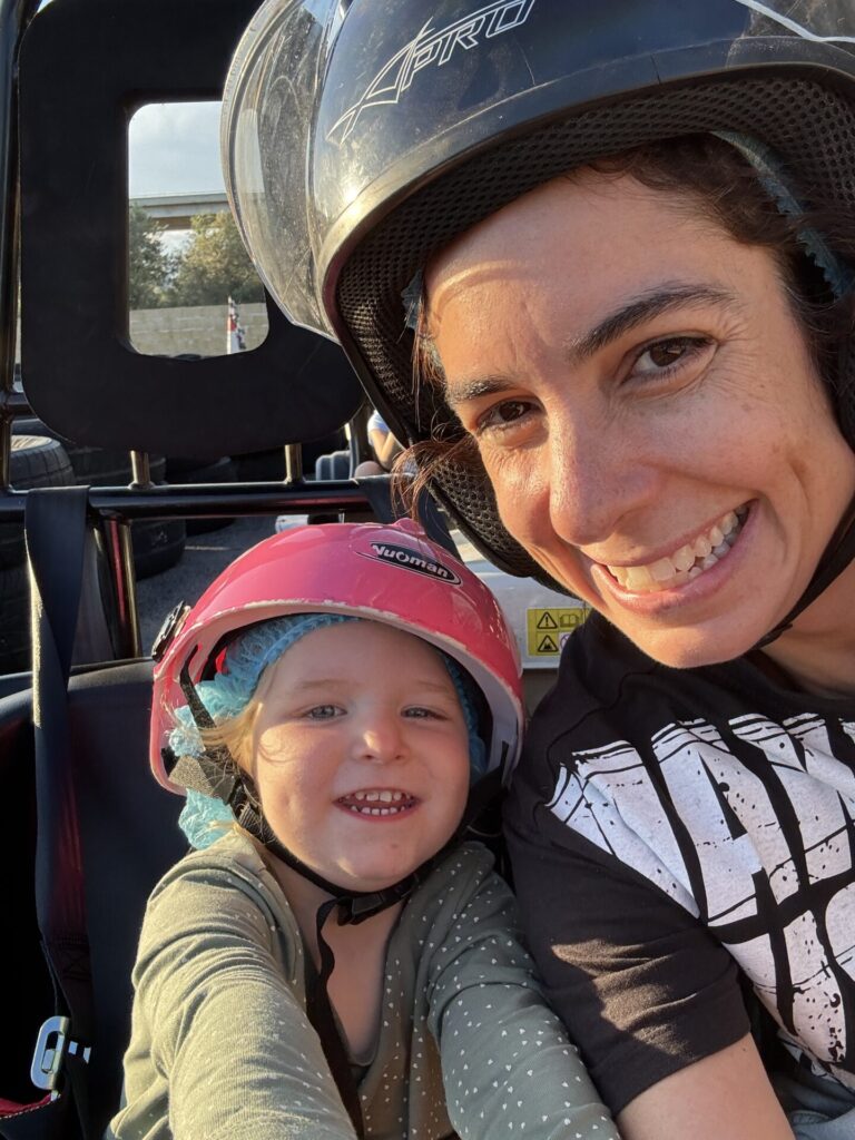 Although Sophie is only two and a half (and the official recommendation is from age 3 and up), she was so excited (and pretty tall for her age) that the staff on-site gave us the go-ahead to let her ride.