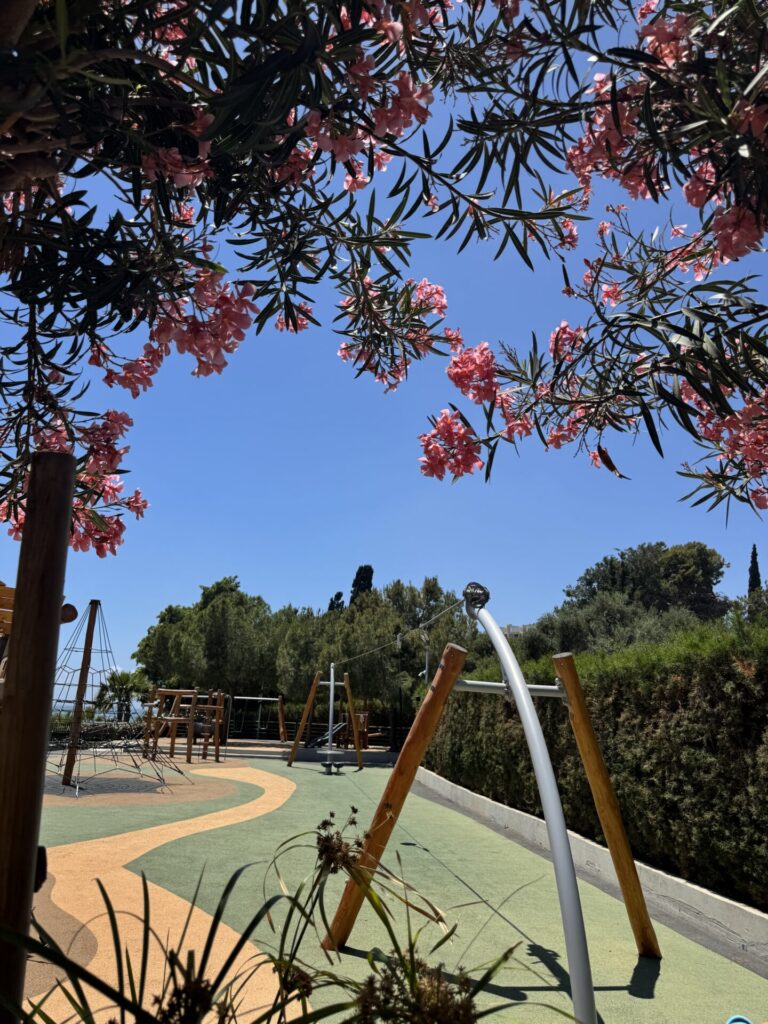 Right next to the restaurant, there’s a brand-new wooden playground with equipment suitable for both toddlers and older kids. Just a few steps away, you’ll find a well-maintained beach with sunbeds and umbrellas (available for €2.50 each).