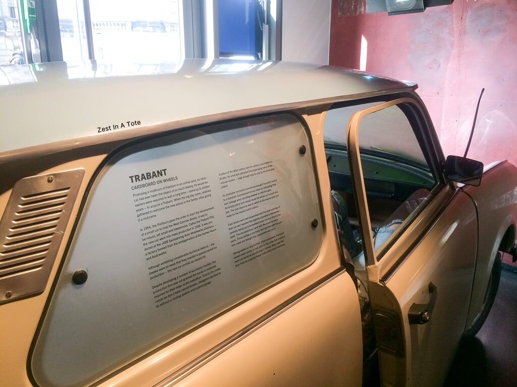 My daughter and I even sat in a Trabant – the car produced then and used in East Germany – and drove it virtually through video footage of roads back then. You must give this a try! Directions.