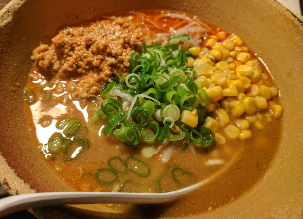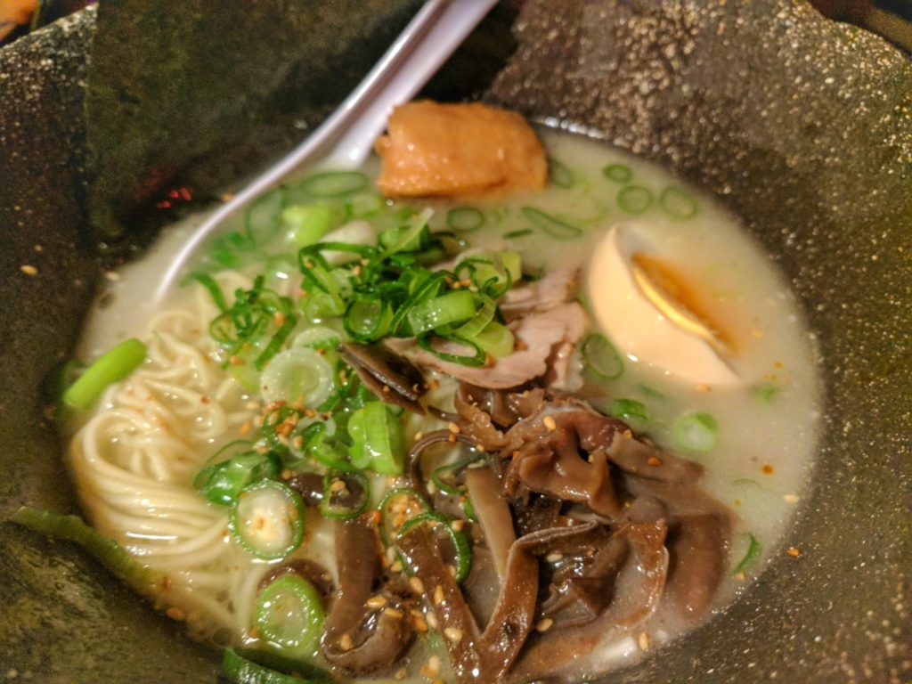 For main dishes we ordered a ramen soup (of course). I ordered a spicy minced meat one, and they ordered the belly pork one. Both of the soups were excellent (I preferred my version because I don’t like fatty meat). My soup was really tasty but this version came without an egg. So I ordered an extra egg (it’s one of the things that I like the most in ramen soup).