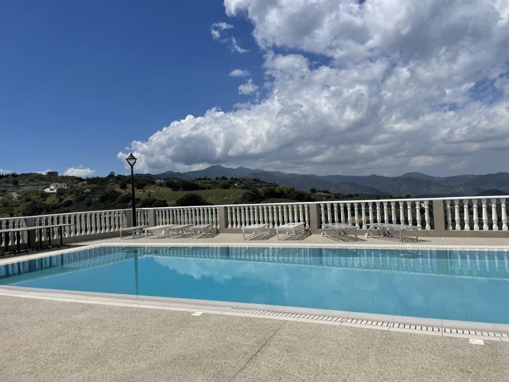 In April 2022, we stayed at the Archontiko Kiverniti hotel for two nights with Maya, who was three-and-a-half years old and Sophie who was six months old. The location of the hotel is pastoral with a magical view of the mountains. It is a family boutique hotel with a homely and pleasant atmosphere. There is a restaurant that serves food all day (the accommodation was based on breakfast, which was good). The hotel has a pool (we didn’t get to try it because it was too cold in April). The distance to the center of the village is a 10-minute walk (maybe even less) and it is a path in nature that is really fun to walk with children.