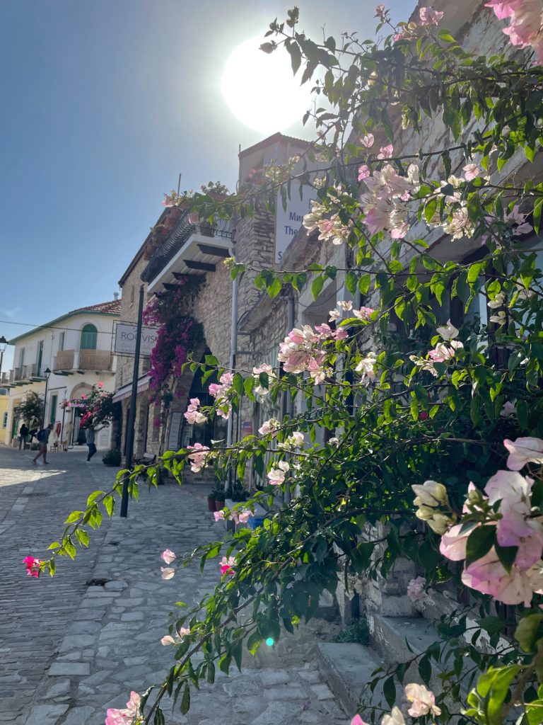 Well, you obviously have to wander around the village, and if you like photography, be prepared to take a lot of pictures because it’s really beautiful there. The village is not big but the architecture in it is so lovely and it has many shops and cute corners as well as many cafes with local produce. In short, you can walk around there for hours because every time you sit down for a coffee or go into a store or take pictures. In one of the alleys in front of the Adamos restaurant we also found a stand that offered fresh pomegranate juice which was really successful, so if you see the stand is open, it is worth trying this juice.