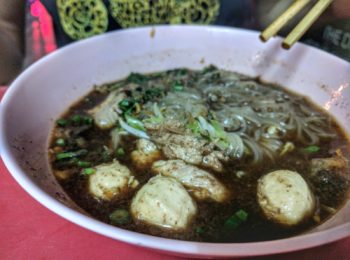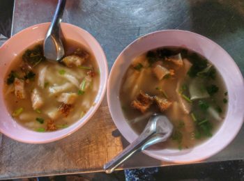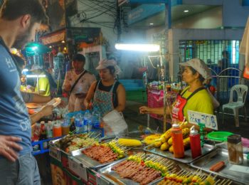 My favorite street food was in China town, especially the different soups. The main street, Charoen Krung (Map to the street) has many street food stalls, as does Itsara Nuphap street with houses a food market as well as many stalls, one of which is an excellent papaya salad stall, Som Tam (Map to the street). Also, the boutique hotel Casa Nithra, which lies a 10-minute walk away from Khaosan, is on a street with many good food stalls as well. It’s called Chakrabongse road (Map to the street).