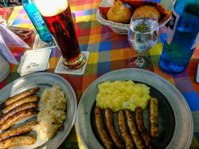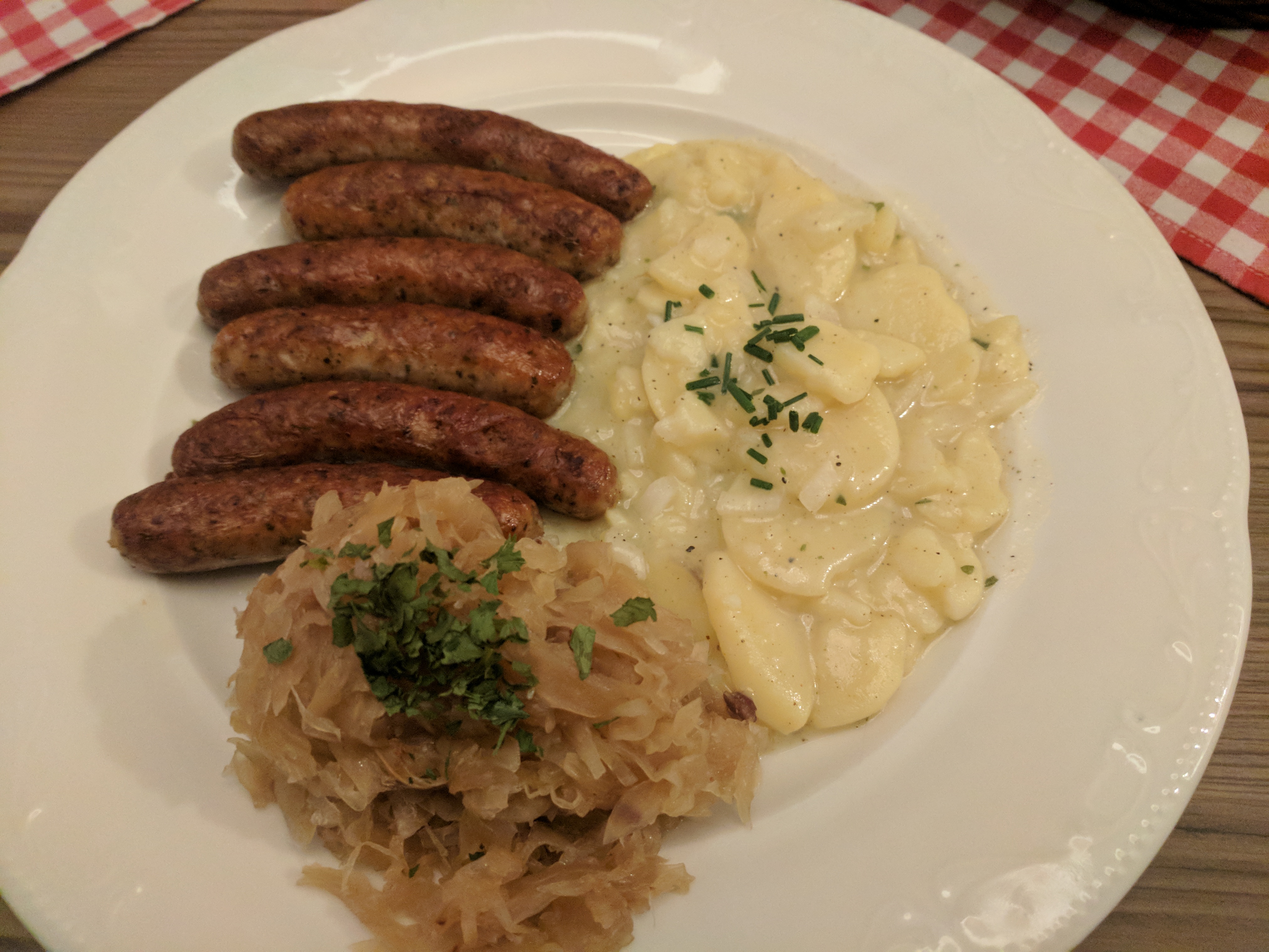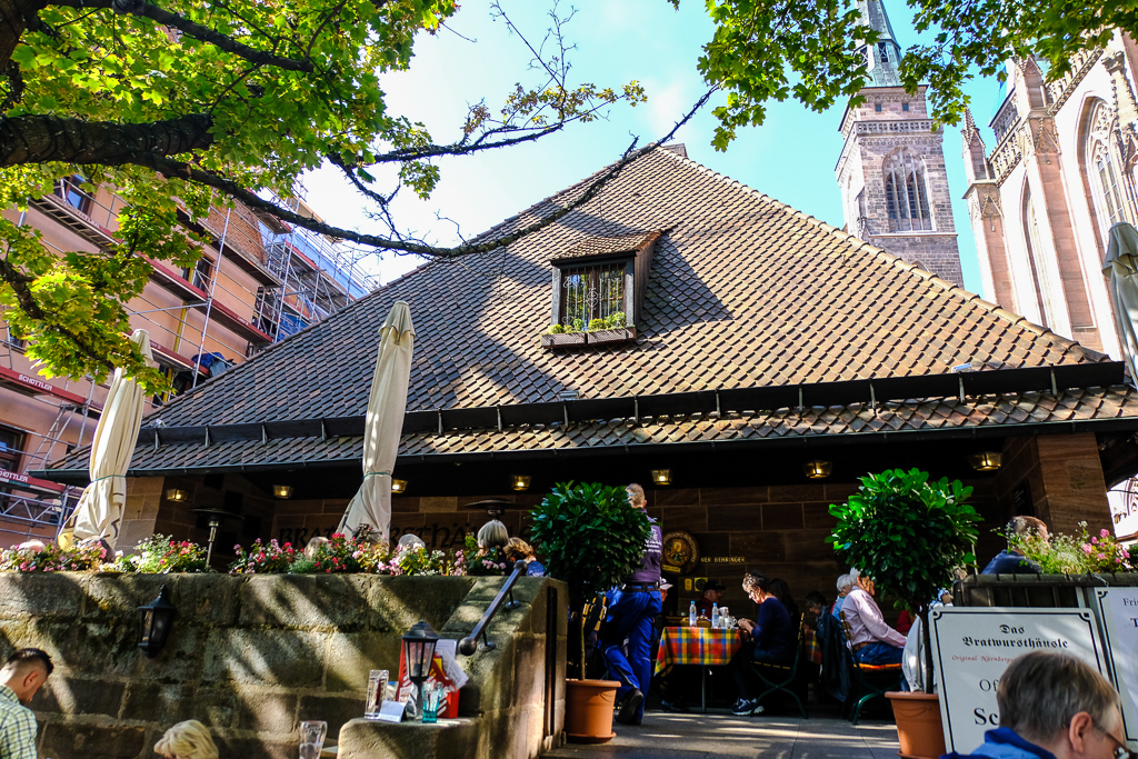 Bratwursthäusle restaurant. A recommended restaurant in the old town which delicious Nuremberg sausages (As you can see, I’ve become addicted to those :)). The restaurant is very popular with locals as well as tourists and is full most of the time (We joined a table with another couple, as there were not empty spaces). We ordered two dishes of 6 sausages with potato salad (Roman regretted not ordering a dish of 12, as he was really hungry, and they were delicious). We also ordered beer and received breads and bagels with them. The service is good and fast, and the atmosphere is fun and jovial. Map.