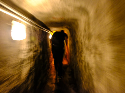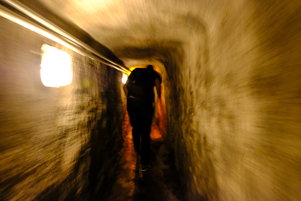 The first stop is the entrance to the cellar, from which you go down and enter a 68-meter tunnel that is only 1.65m in height, so you have to walk slouched (Especially Roman since he’s really tall :)).