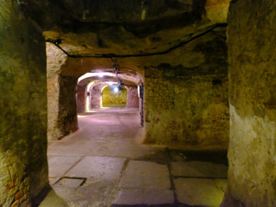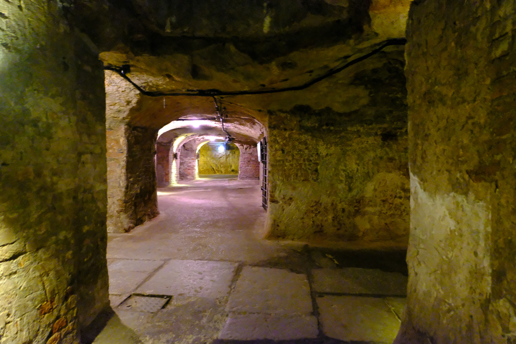 The cellar has four floors, the first being the oldest and the fourth being the newest. The further down you go, the higher the ceilings are. The first floor doesn’t exist anymore, since a parking lot was built in its stead.