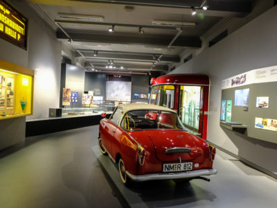 The museum has two rather large floors. At first, you’re greeted by exhibits of old train cars, the oldest ones in Germany. There are then full-sized steam trains, one of which you may climb and see the engine room and how it used to be operated.