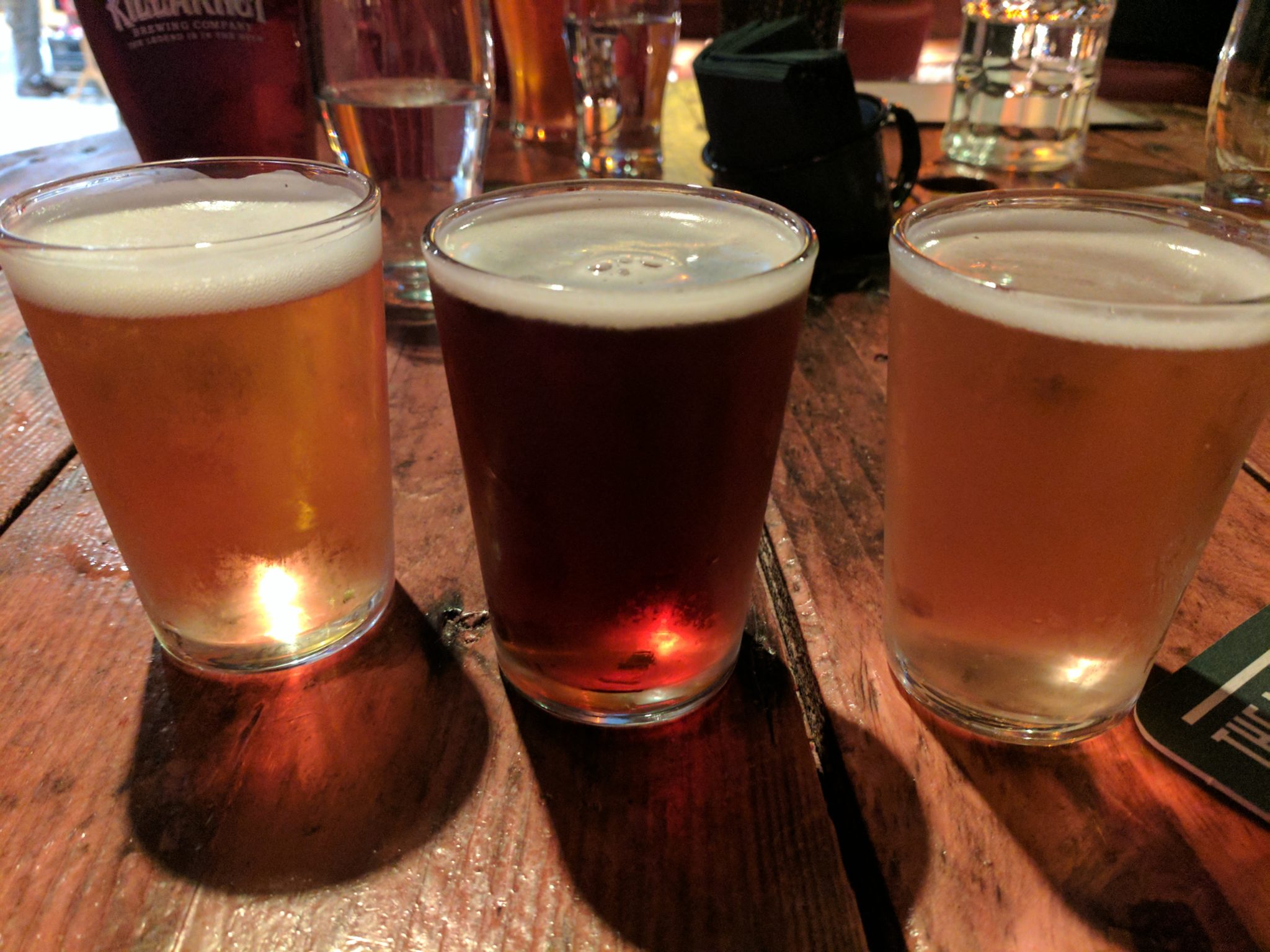 Close to the town center there is a local beer brewery called Killarney Brewing Company, which has great beers and delicious pizza. I sat there with some friends and they all enjoyed the beers and pizza. I ordered a tasting of three beers and they were great.