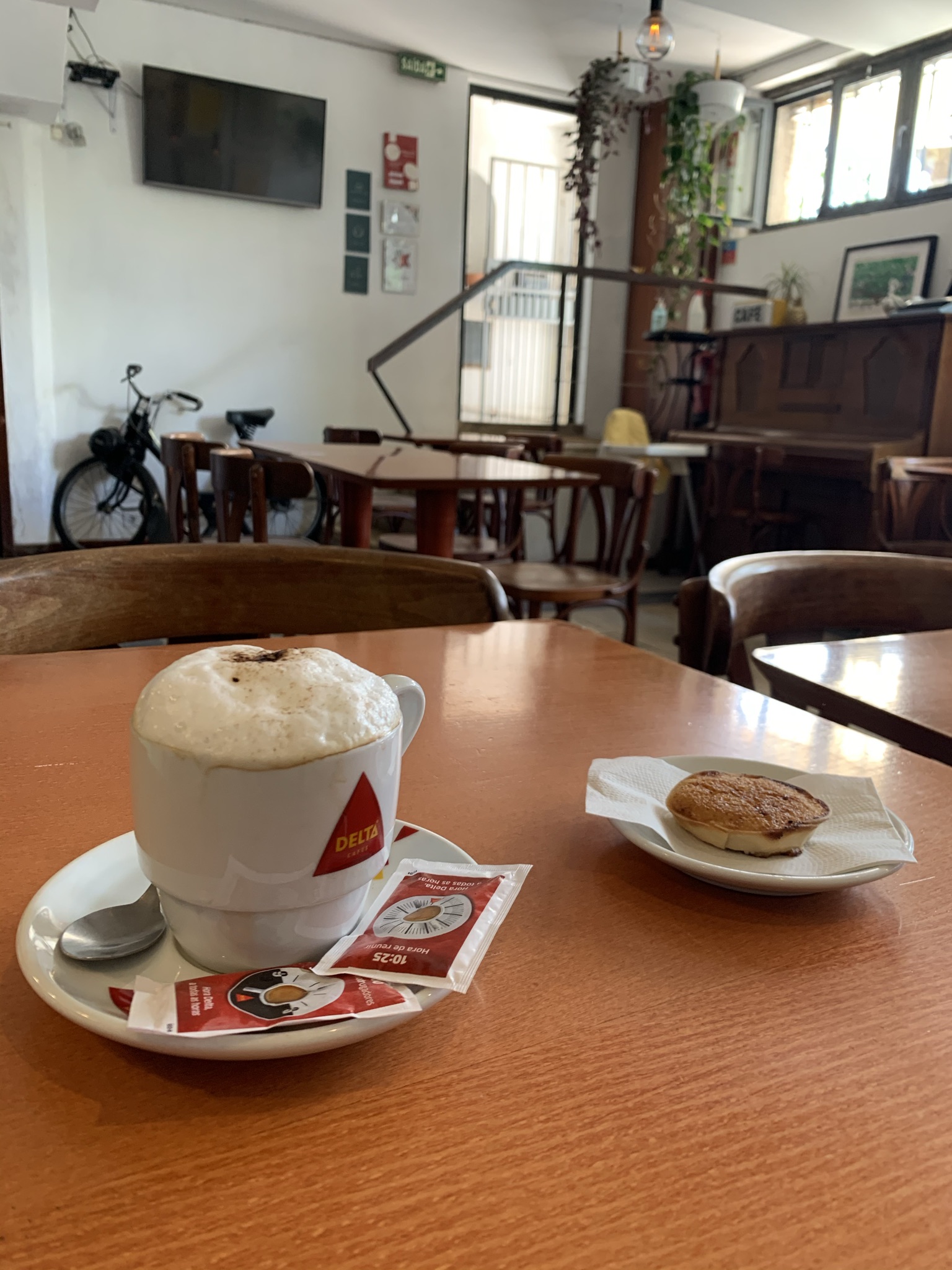 The first thing I did when I got to Sintra was go for coffee. There was a cafe that looked nice near the train station, but it was crowded so I went to a calmer one. It was a nice cafe with desserts and drinks and you can sit outside or inside โ Garagem cafe (directions). There is a bus stop close to it so from there you can start exploring Sintra.