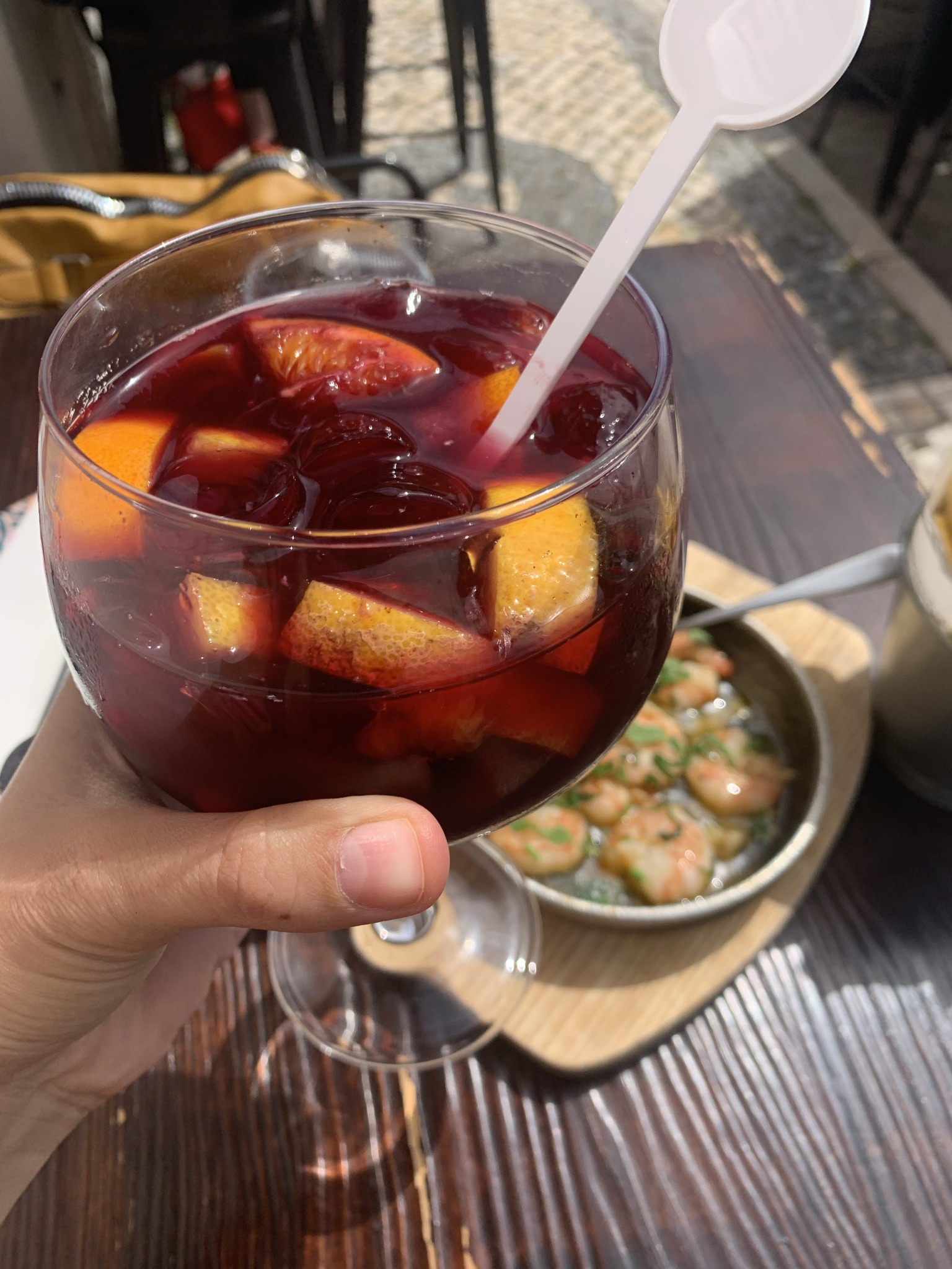 I sat there in a cool restaurant outside whose highlight for me was their excellent and refreshing sangria that cost 3.5 euros โ Tasca Saloia Restaurant (directions).