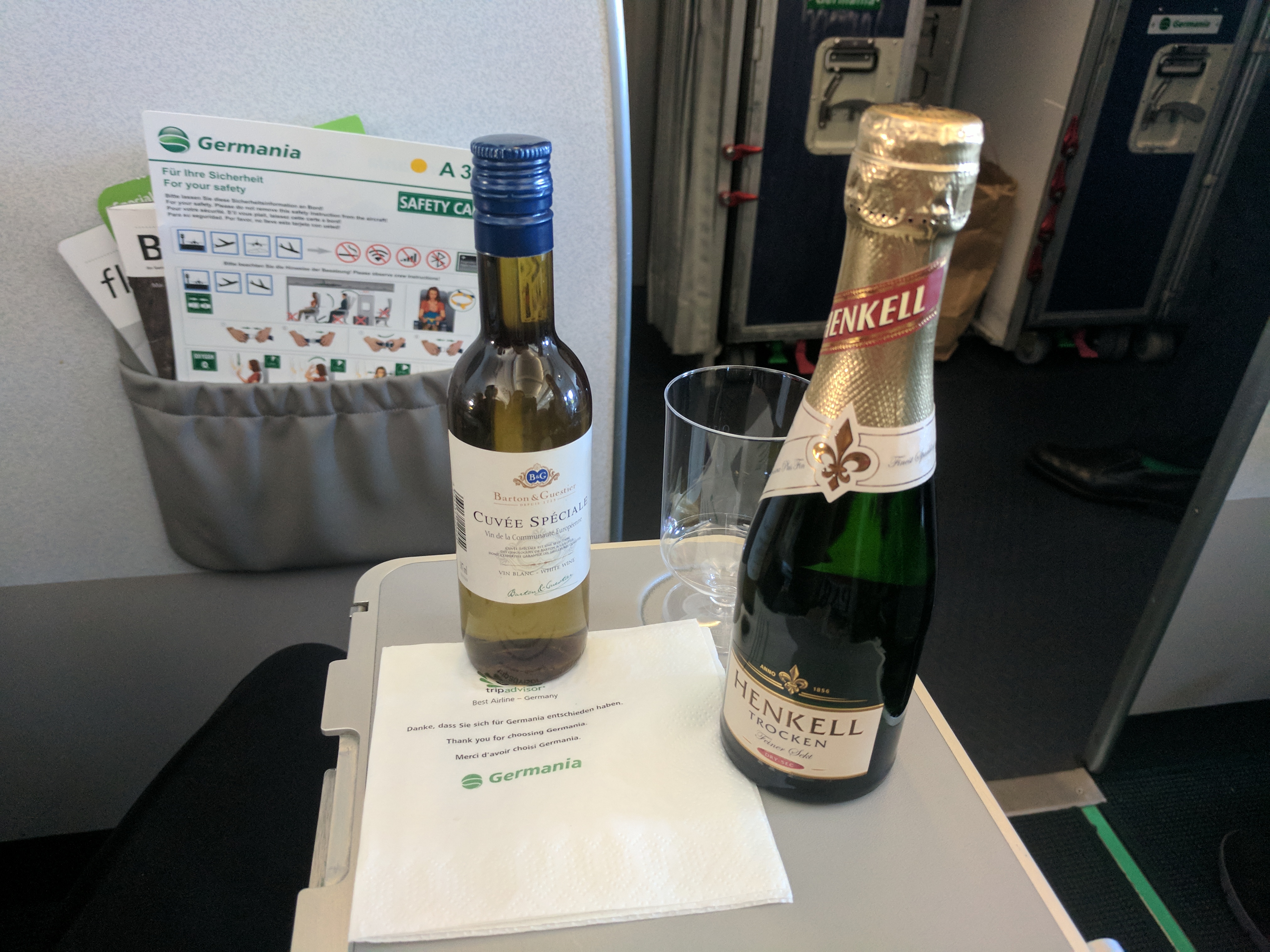 We came to Nuremberg on a direct flight with the Germania Airlines company. This is a regular flight rather than a low cost, and so includes a suitcase per person and an airplane meal. So fun. We were already accustomed to flying low cost, so for us this was an upgrade. You can find cheap prices for a flight, around 180 dollars, if you book tickets a long time in advance – For example, for May 2019 (It’s now October 2018). On the flight our seats were upgraded to seats with more leg room (We’re both tall, especially Roman) and we also received a coupon for a free alcoholic drink on the plane. The leg room and the wine were a great start for our trip.
