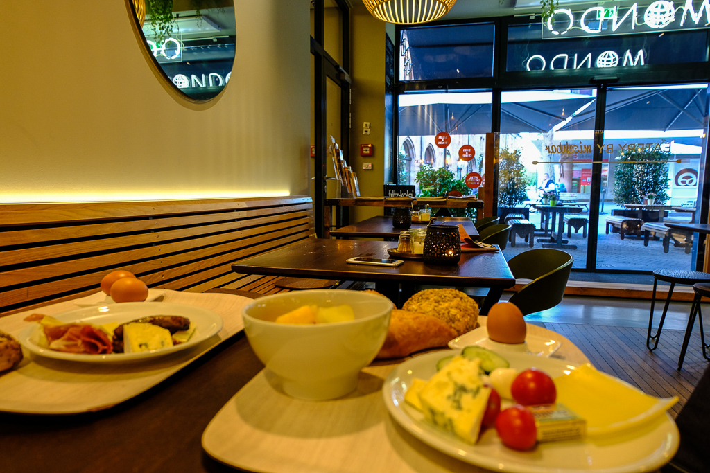 Adjacent to the hotel is the restaurant Mondo where you can have a buffet breakfast at 12 euros a person. The price also includes coffee, such as cappuccino, cold coffee and more.