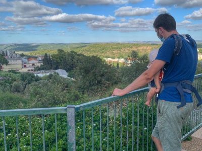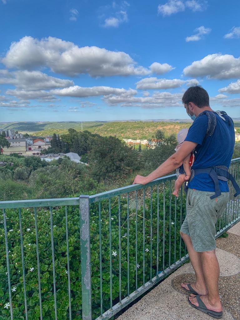 Sometimes in the afternoon Roman and I go out to get some fresh air with Maya in the cart. One of the places we like to go to is Jabotinsky Street. Both because it is relatively close to our house and because there is a really beautiful view from there, as well as an observation point that is fun to sit in.