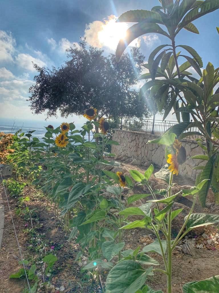 I discovered this place after we returned on foot from the Beit Maimon Hotel. The hotel is right next to this garden and the view from there is one of the most beautiful in my opinion. It is a view of the sea, combined with flowers and palm trees. To the right of the garden is an area of stunning sunflowers. And it’s also worth walking around Tzahal Street because it also has very beautiful houses.