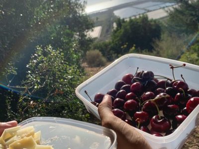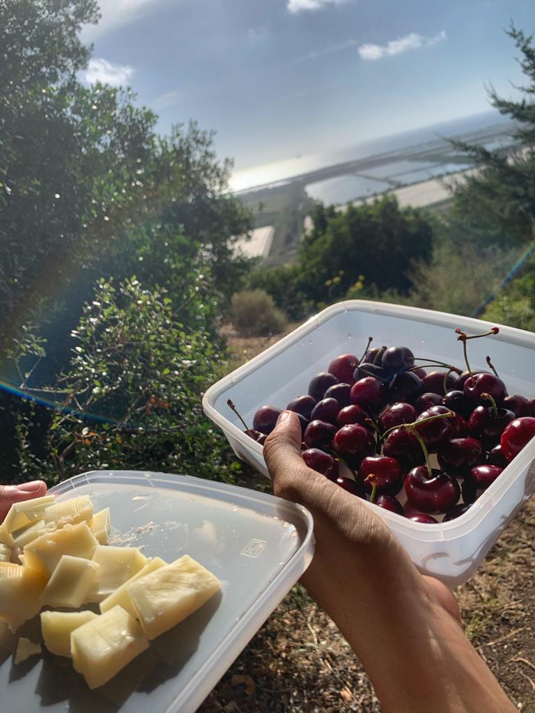Arriving at the observation point – park the car by the pool and on the right you will see a checkpoint with a sign for the observatory. There is a walk of a few minutes in a natural forest and then you reach a bench from which the beautiful view is seen. We decided to have a little picnic there towards sunset and brought cherries, cheeses, and coffee with us.