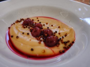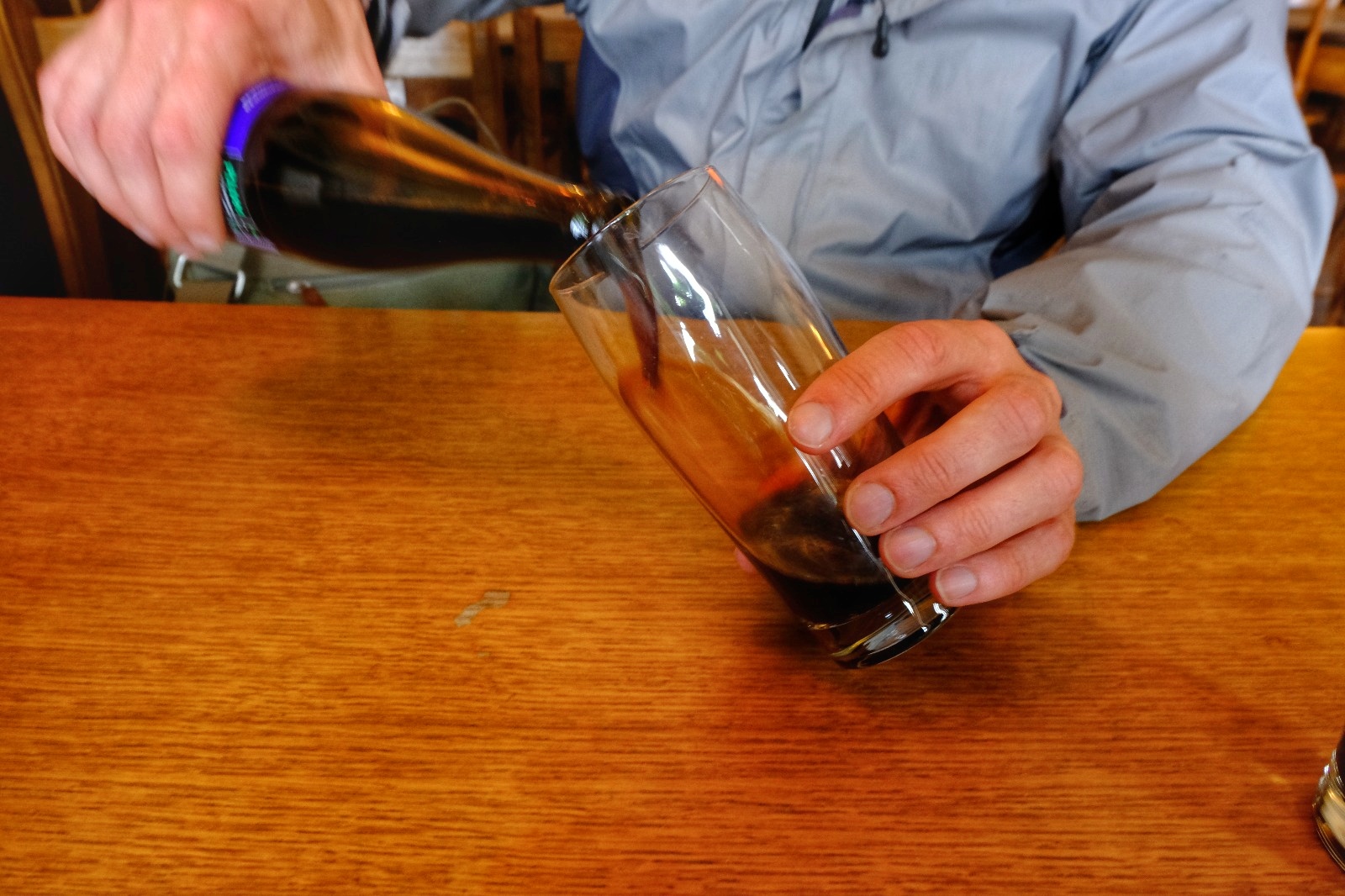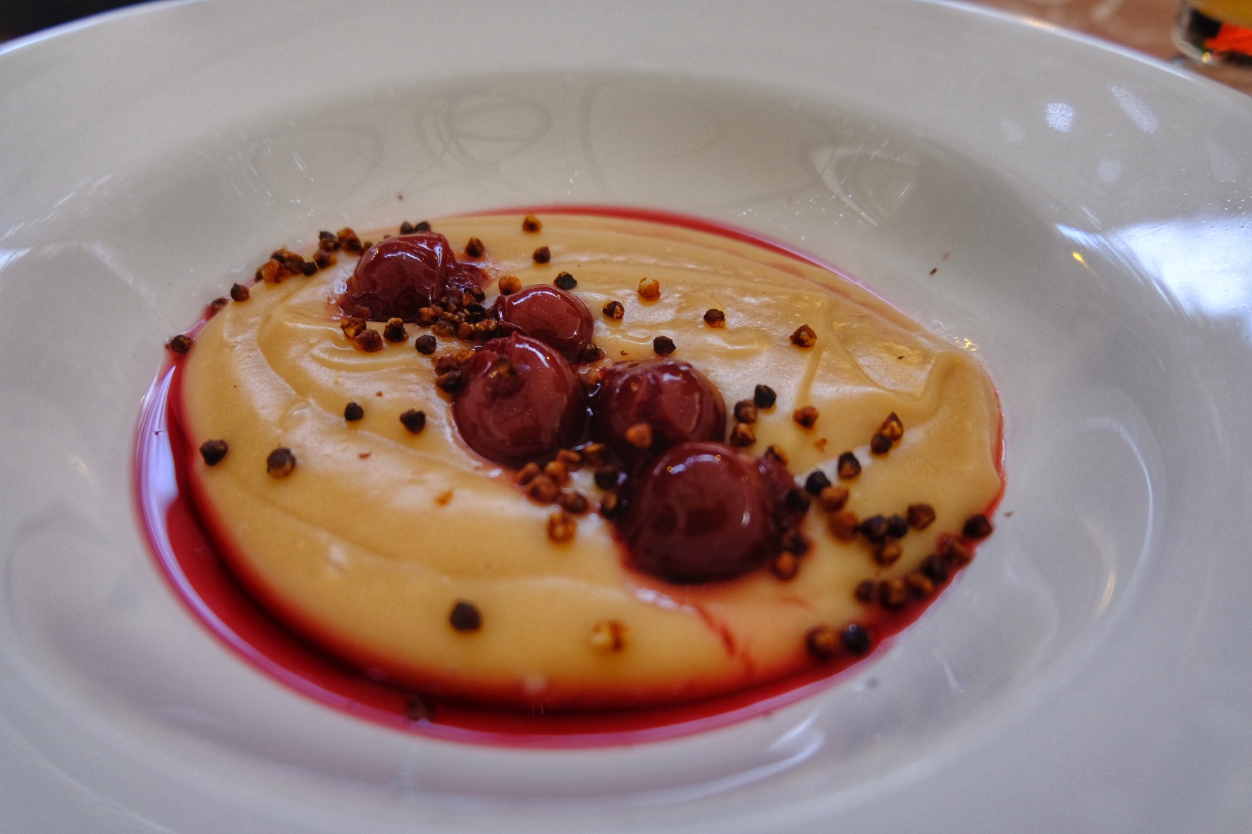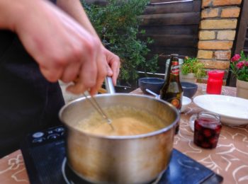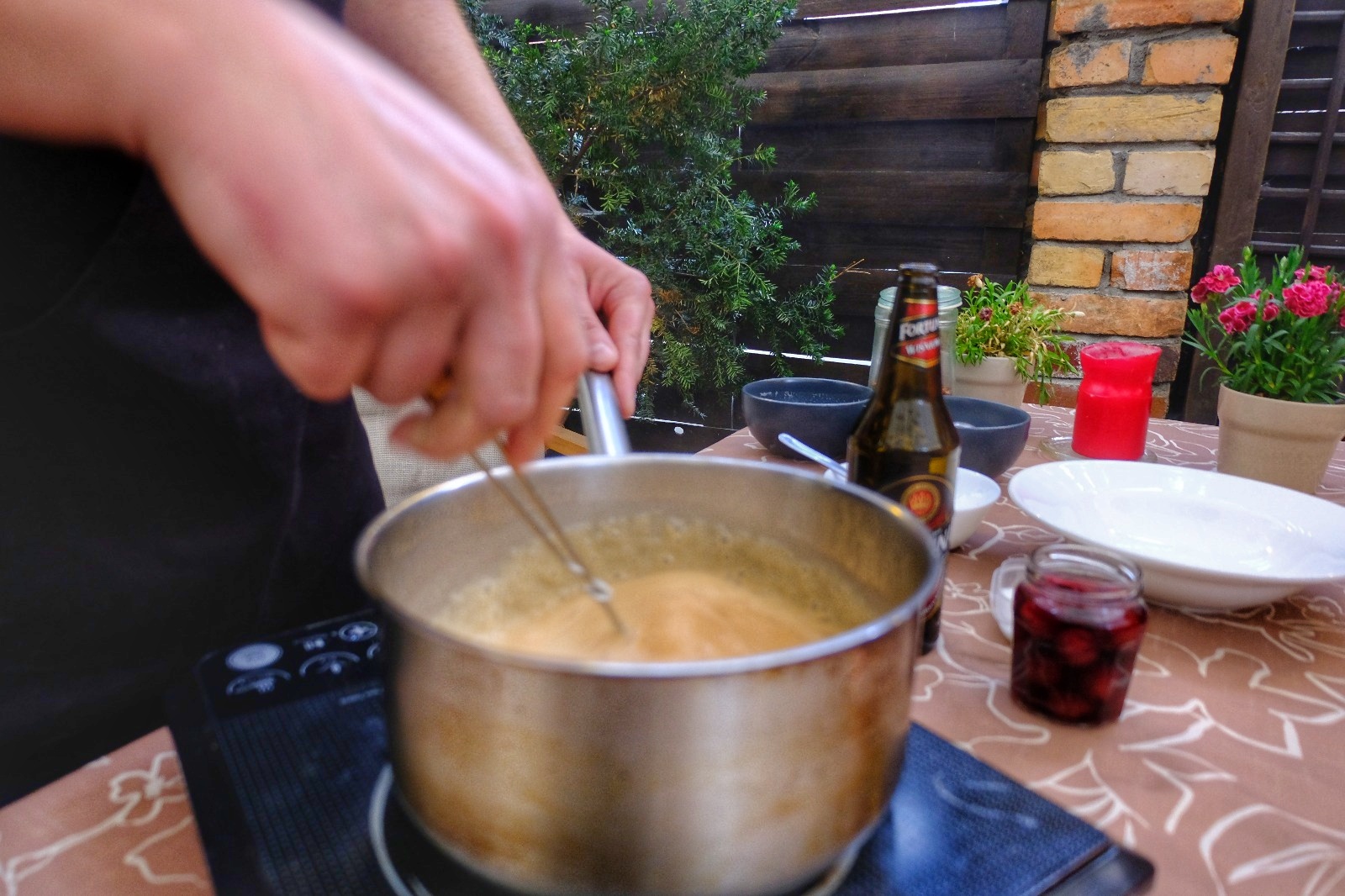 We then went to the Pastela restaurant to try some beer pudding. It’s not part of the beer tour or the tastings, but Piotr wanted me to try it, because it’s really cool. You can visit this restaurant on your own and ask for this dessert, and they’ll make it especially for you. The lovely chef got all the ingredients and a portable hot plate, so I can film while he makes the dessert for me. The beer is cherry beer, and at first you can’t even tell the pudding is made of beer, only towards the end do you notice a sudden bit of bitterness from the beer itself.