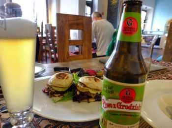 There were goose filled dumplings, duck hamburger and a potato dish and polish mazettes. These dishes are served on the company’s food tours. In addition, we were served traditional polish beer which was relatively bitter, but with an interesting flavour.