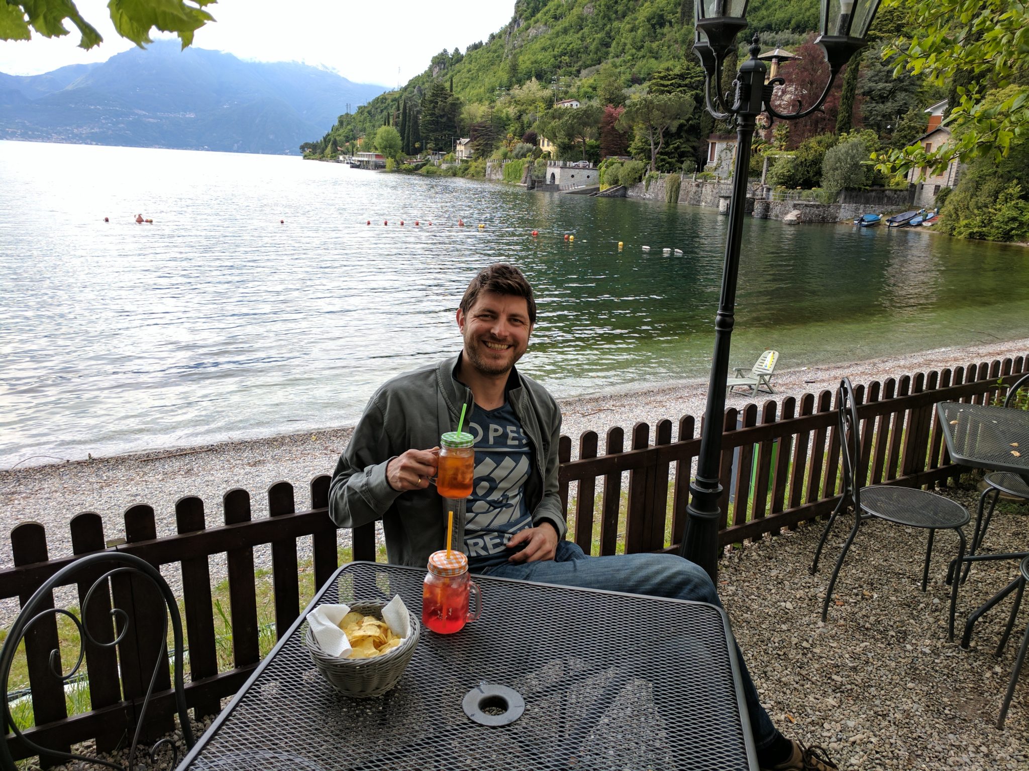 After our day trip to Belano we wanted to stop by a cafe. We ended up at Lierna village, where we found Pizzeria Riva Bianca that is right on the lake. We got some cocktails. I ordered campari and roman ordered aperol spritz. They were both refreshing and it was so nice to drink them overlooking the gorgeous lake.