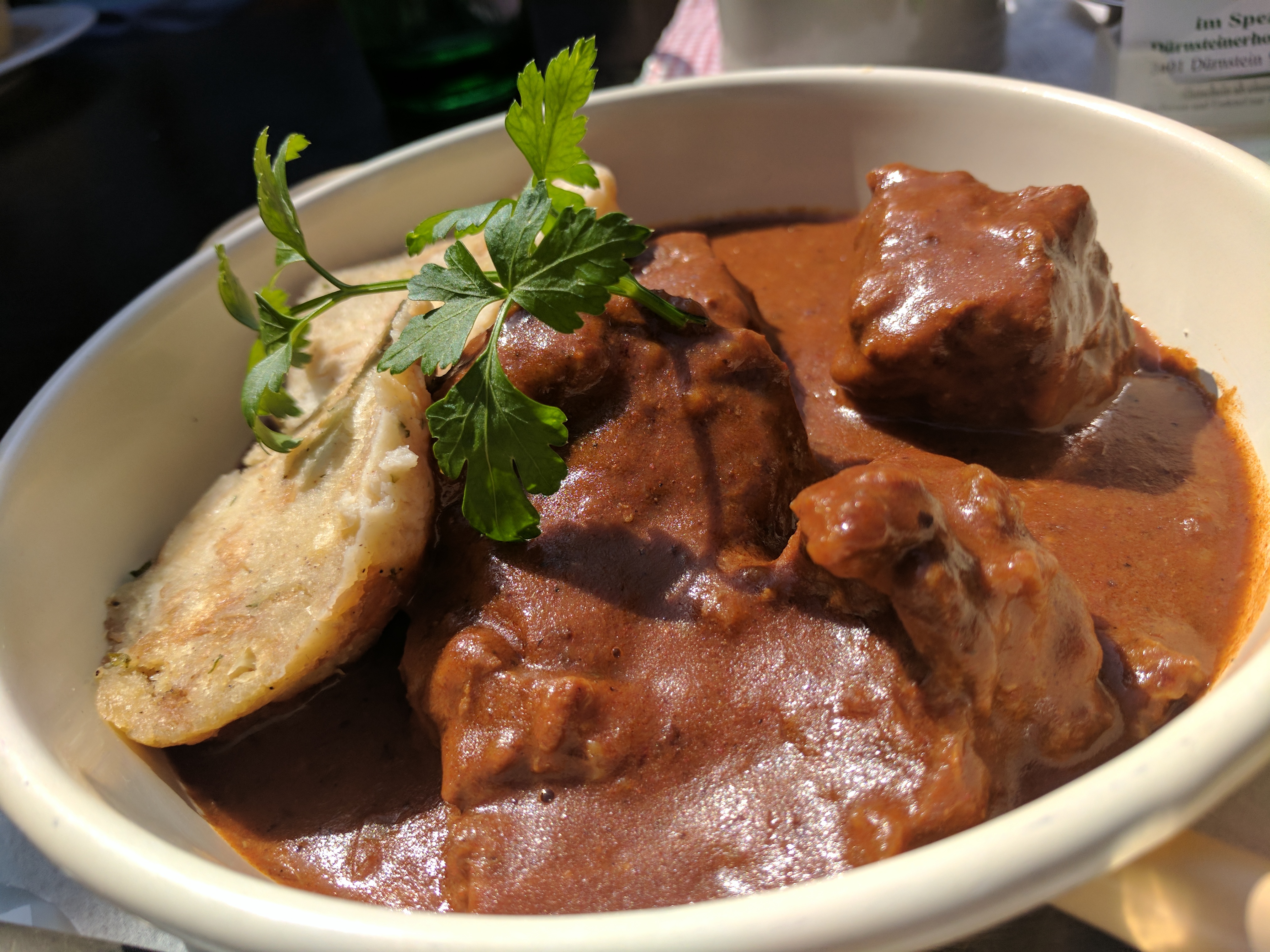 After some free time, we sat down for lunch. We visited a local restaurant in town and everyone ordered a different dish. Roman ordered goulash with potatoes, the other guys ordered Schnitzel and I ordered a vegetarian dish of cooked vegetables with an egg, sunny side up.