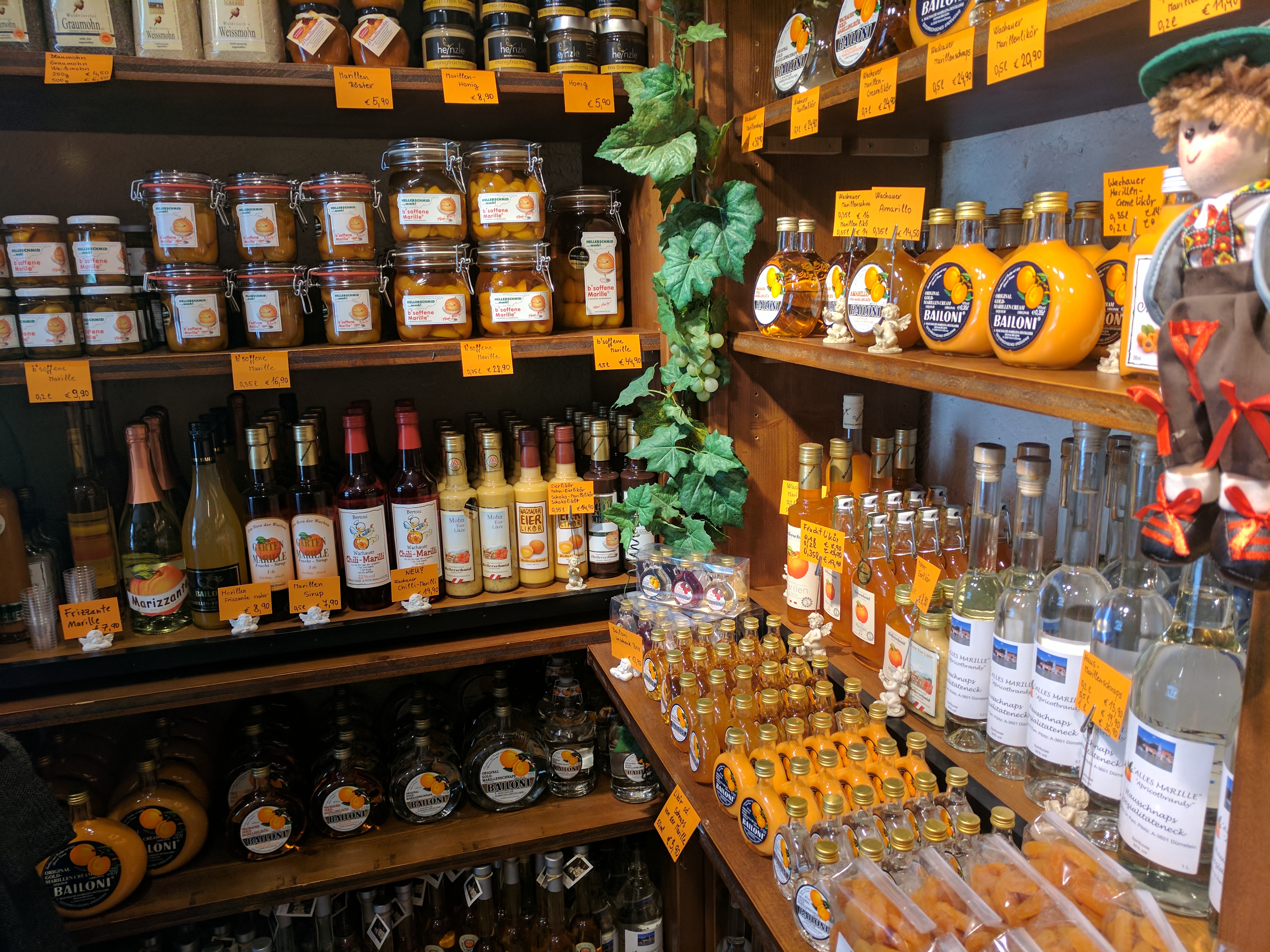 He went up to the vantage point to take pictures from up high and I took photos of the lovely town itself.The Wachau region is known for it’s apricots, hence there are many shops selling apricot products and offering very good liquors.
