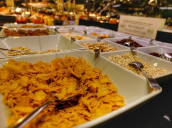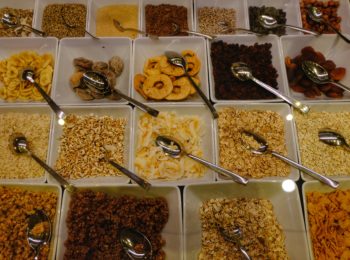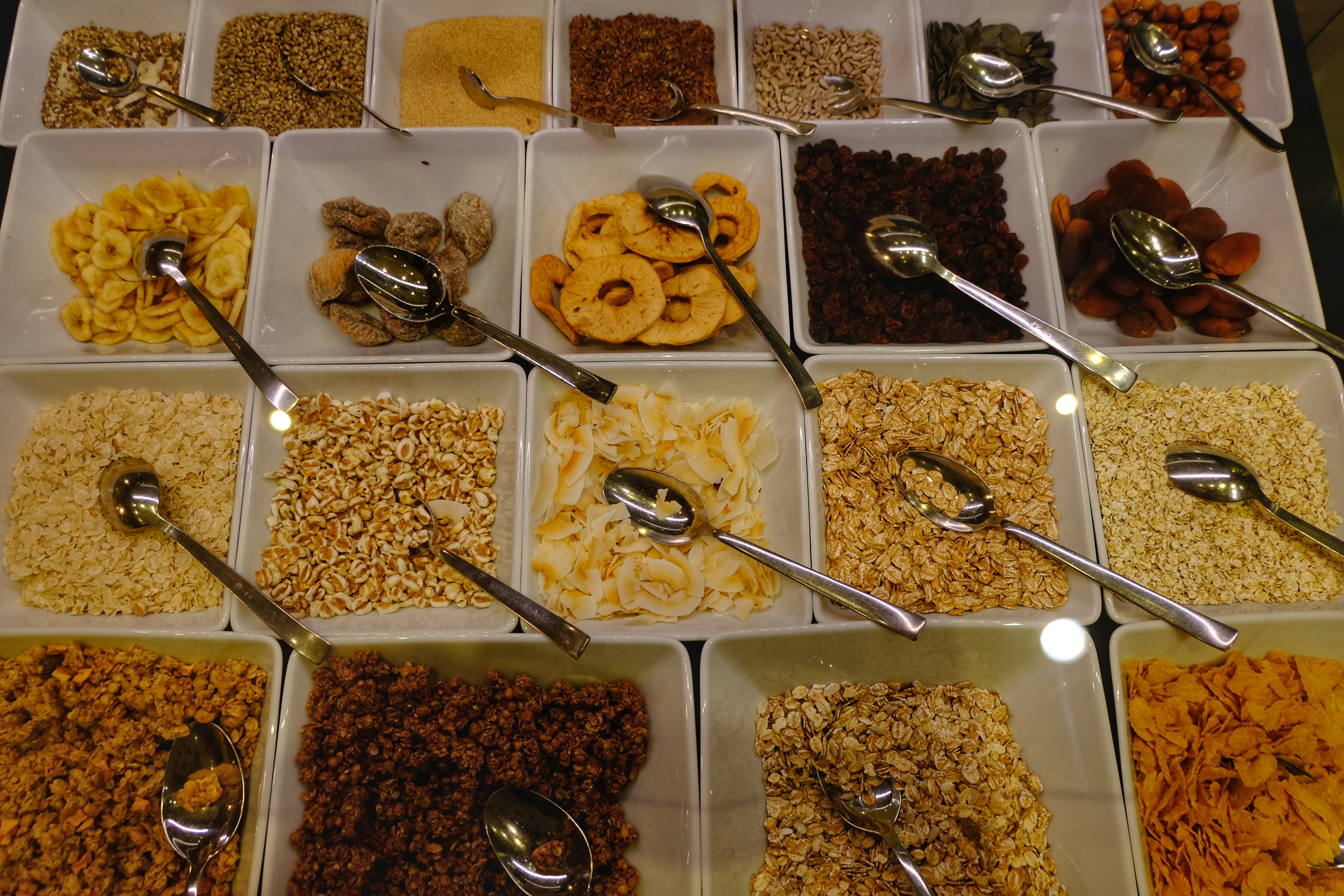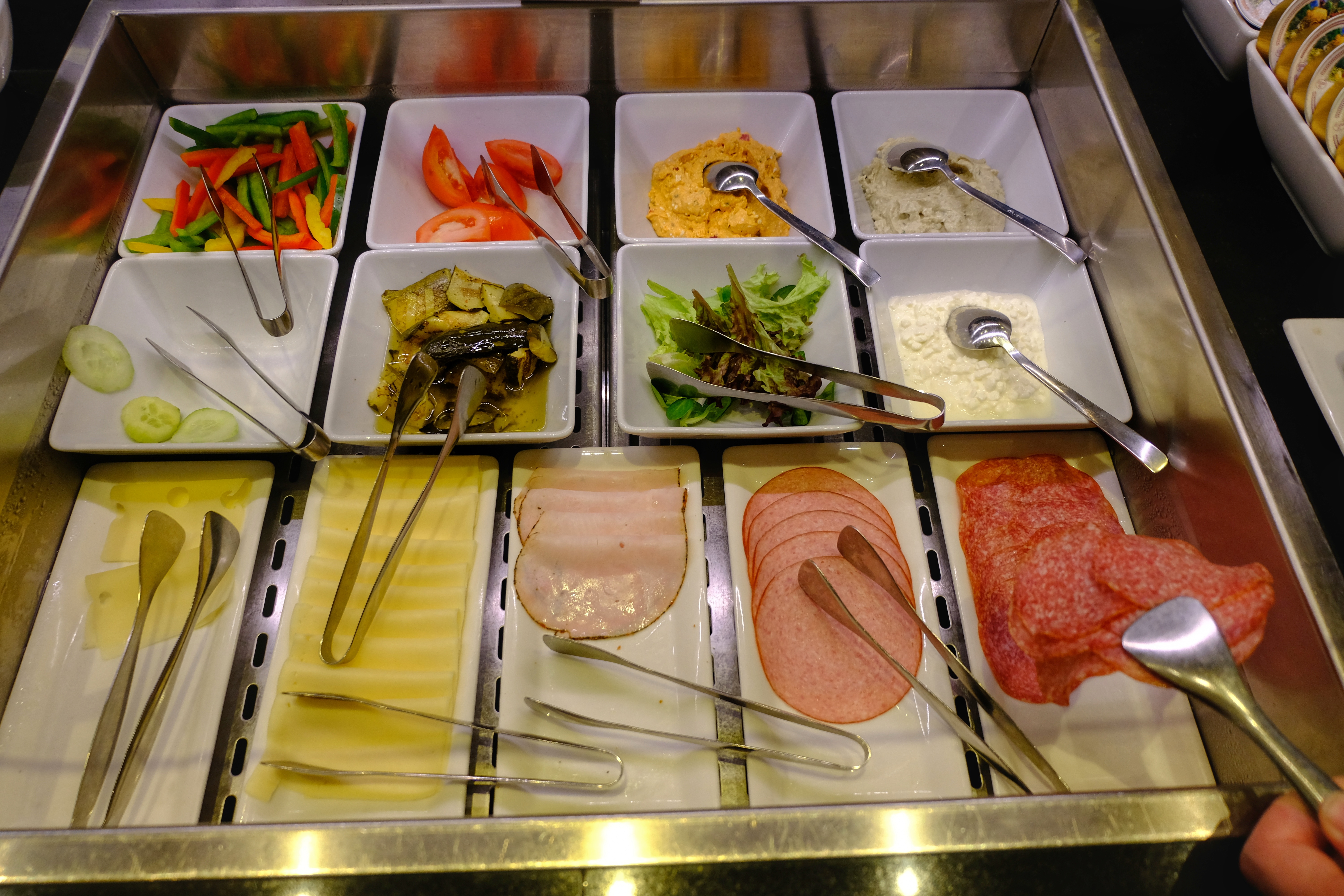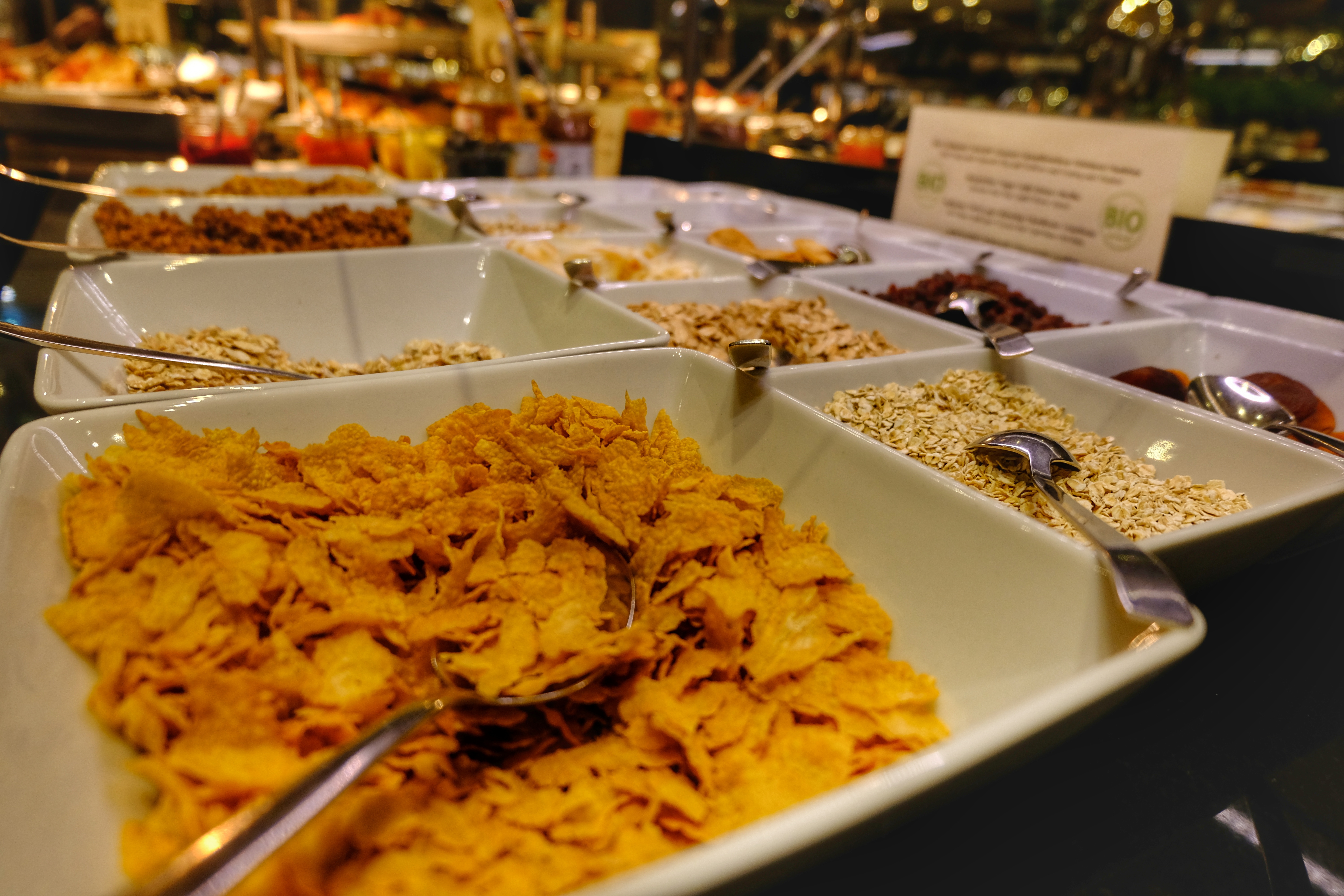 Breakfast is an organic buffet with a really pretty presentation and a large variety of high-quality foods. Gourmet hard cheeses, sausages, smoked salmon, vegetables, dips, appetizers, breads, eggs, many healthy treats such as granola, dry fruits and more, natural juices and different desserts every morning.
