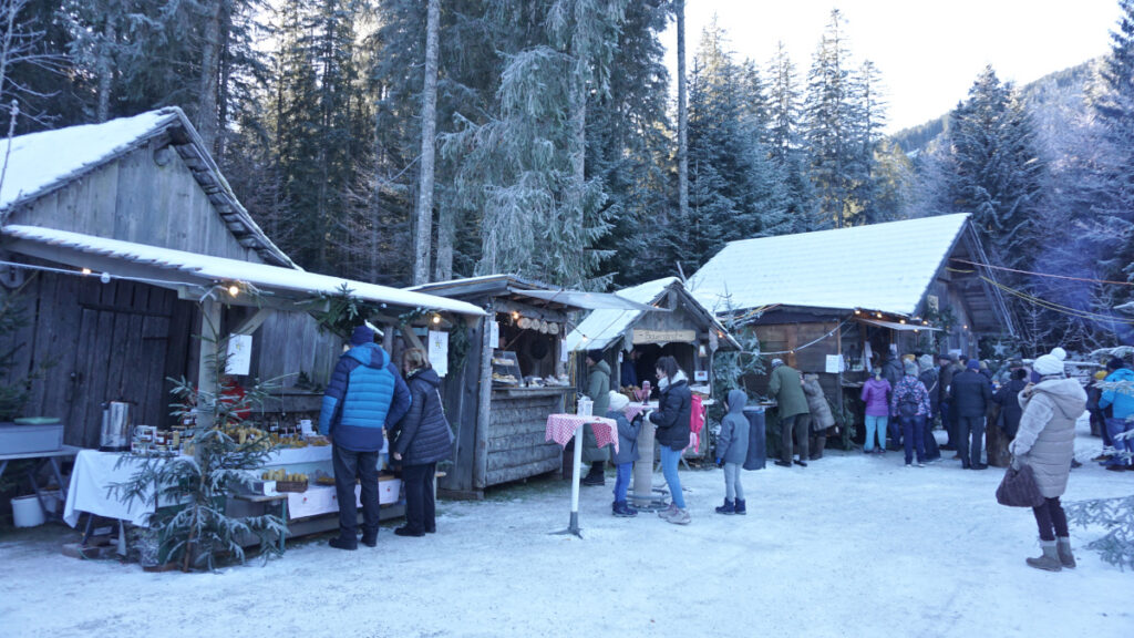 Of course, you can also heat yourself with a warm beverage or at the bonfire. At the unique Christmas market of Gosau you can find bits to eat, from traditional snacks to chestnuts, potatoes, ginger bread, cake and sausages. A program keeps you entertained, here is live music, a horse carriage tour, handicraft for children and for animal lovers, you can pet some donkeys.