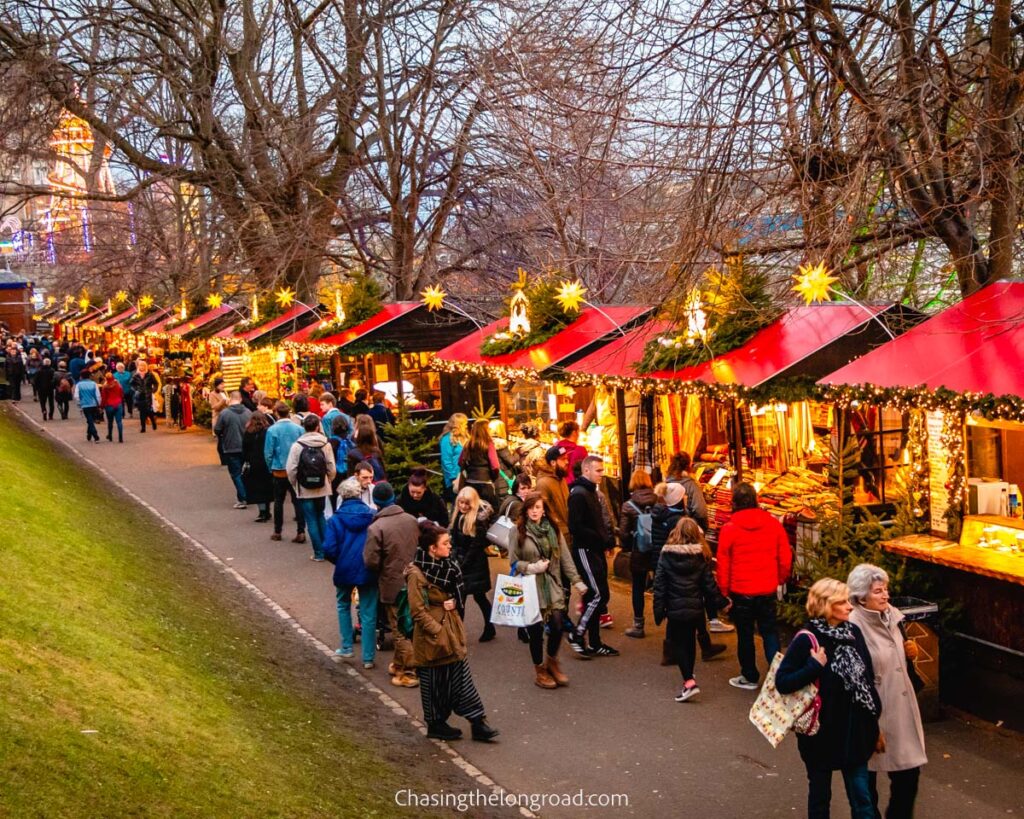 Although Edinburgh looks magical at any time of the year, during the festive season, the Scottish capital turns into a winter wonderland. And at the centre of it is the Edinburgh Christmas Market. What makes this market special is its spectacular settings. Nestled in Princes Street Gardens, the market stretches beneath the mighty Edinburgh Castle and the charming historic buildings of the Old Town.