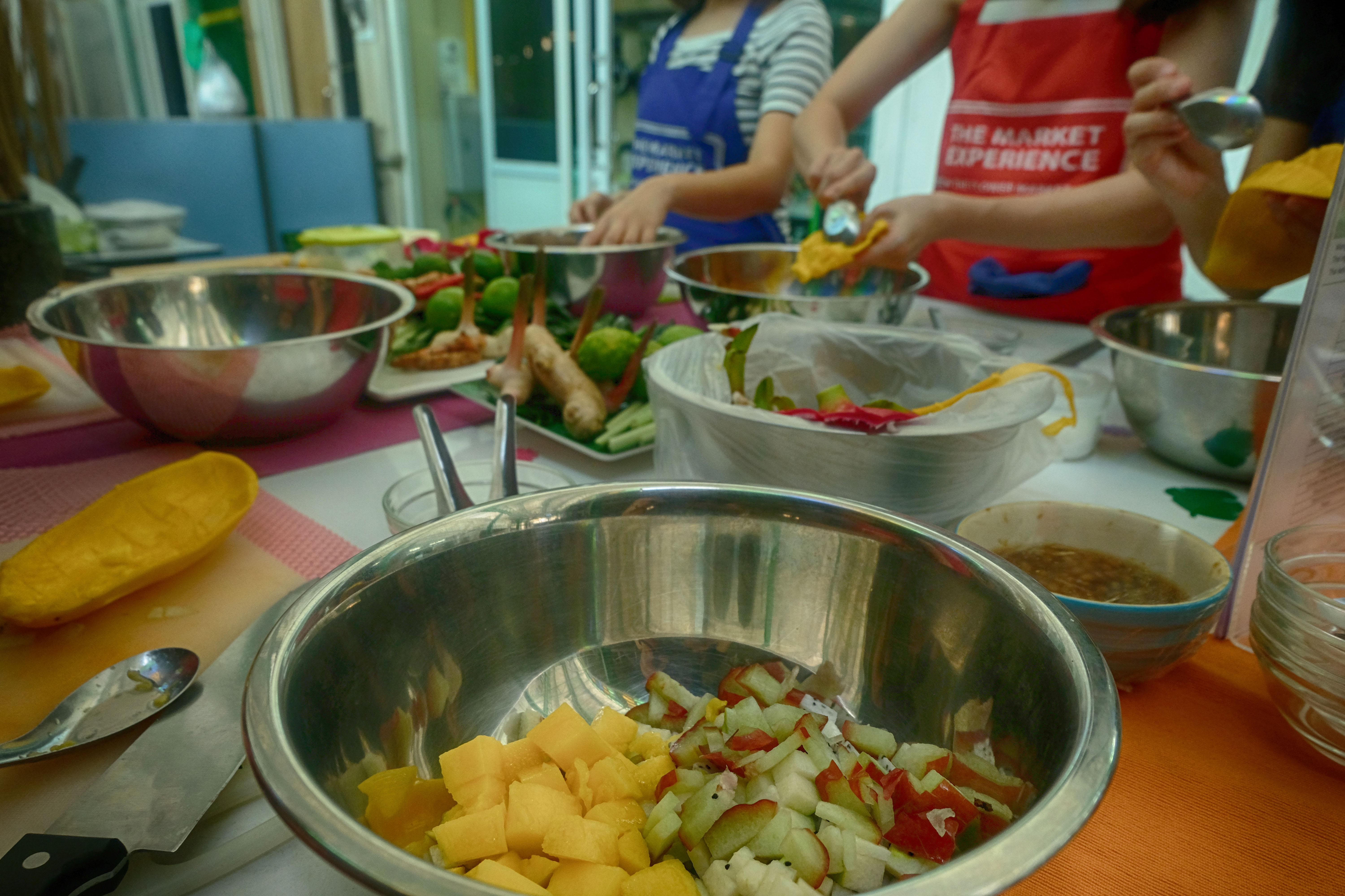 The timetable for our class was making an appetizer, a tour of the market and then 3 additional dishes. Making the first dish in cooking class