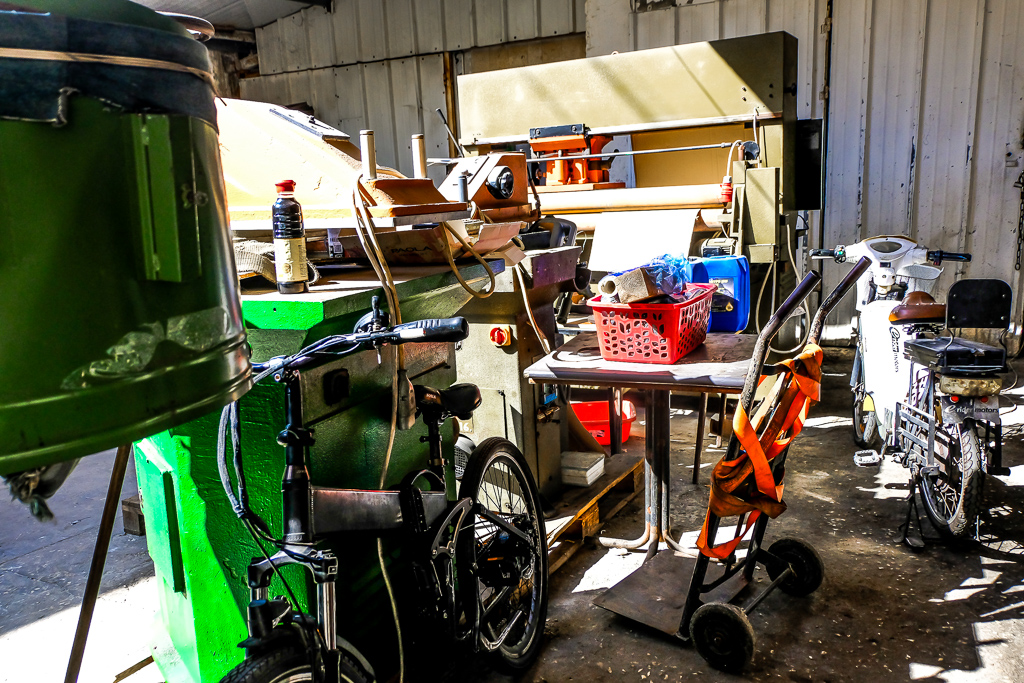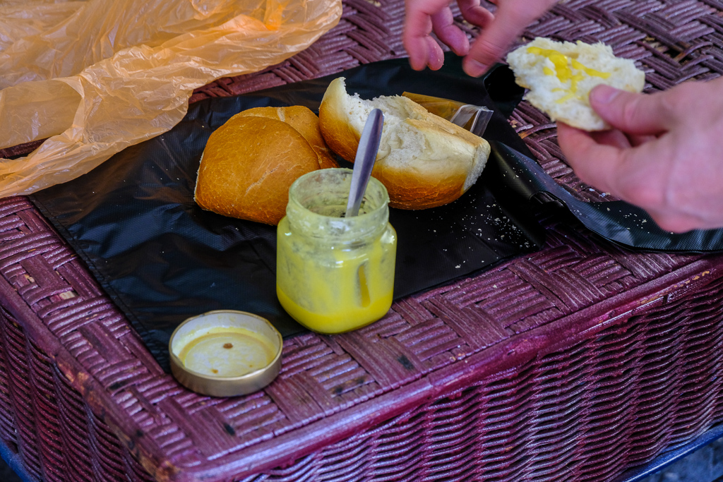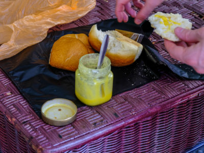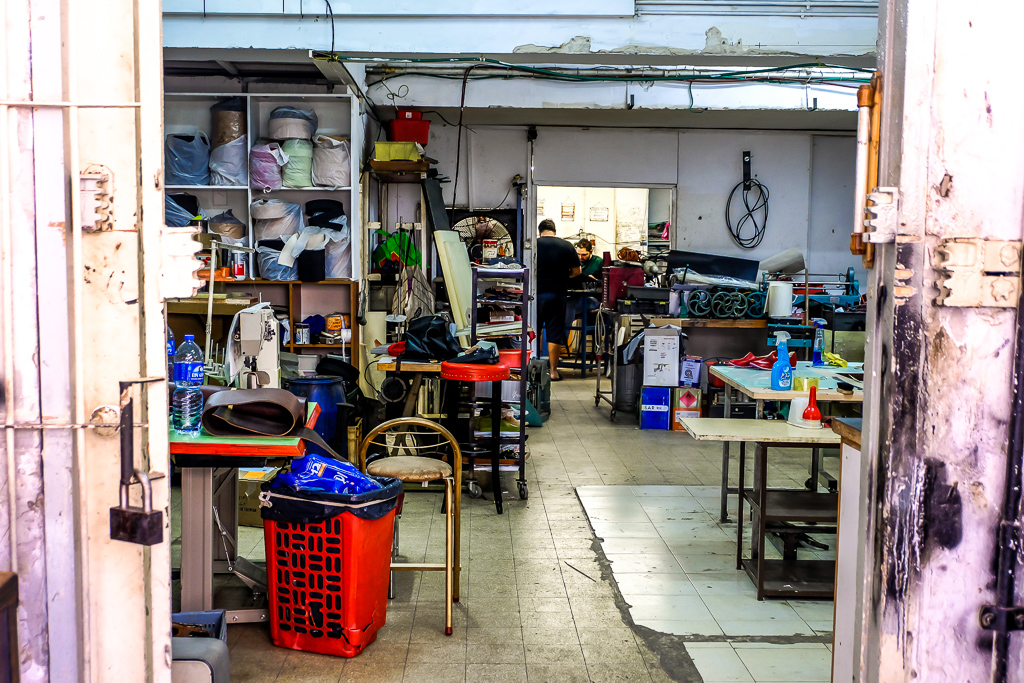From there we went to Neve Sha’anan street, the central street of the neighborhood which used to be a street of purely shoe stores (500 m’ of shoe stores). At some point we turned into a place that looked like a small factory and it turns out there’s a plant for making knives for leather cutting machines but… Apparently there’s also a small Eritrean bakery there, making breads and offering deliveries in the area. David brought out two buns for us and some butter oil (Like Indian ghee) and berbere powder – an Eritrean powder you can only find in Neve Sha’anan. Each of us cut off a piece of the bun and dipped it in the powder, it was tasty and a nice experience.