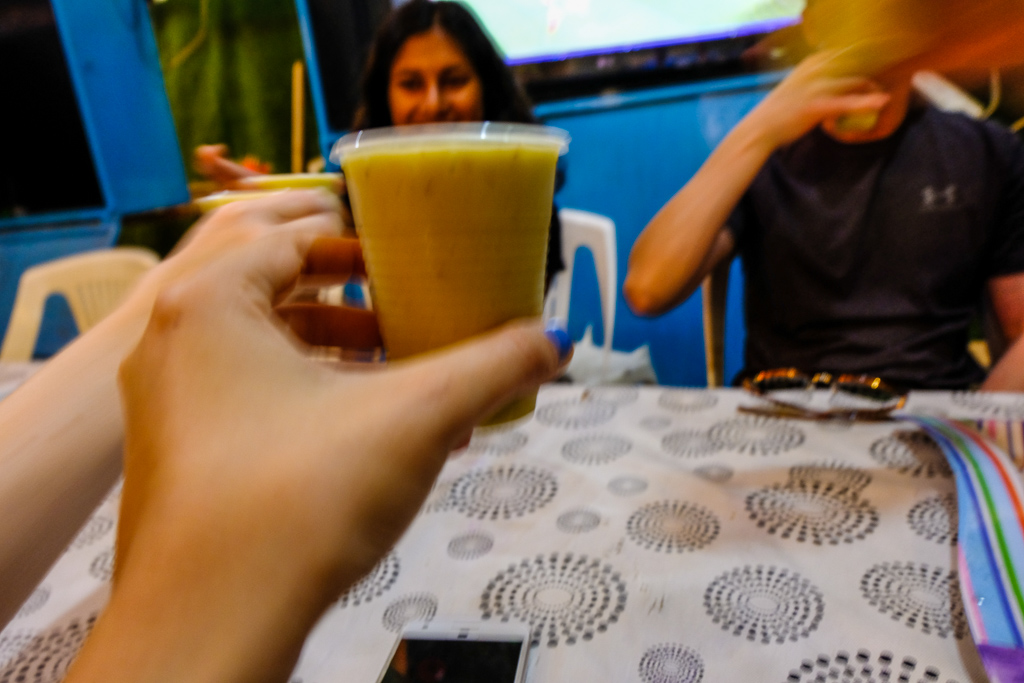 It’s essentially a gathering spot for people who come to drink (Not alcohol), eat, talk and watch TV and just hang out together. We drank a papaya, mango and avocado shake and it was a great way to start a food tour.