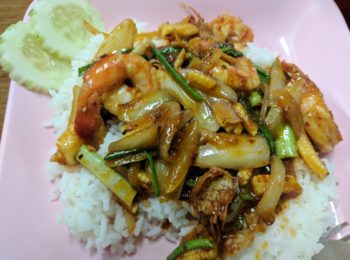 The entrance area has many restaurants in which you can either sit down for lunch or buy food to take to the falls. We ate at one of the restaurants and the food was good. It’s touristic Thai food, but it’s not bad at all.