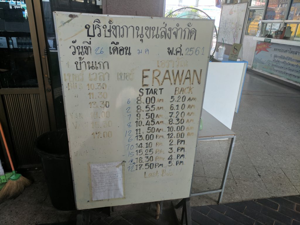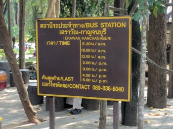 There are buses back to Kanchanaburi, the last of which leaves at 17:00.