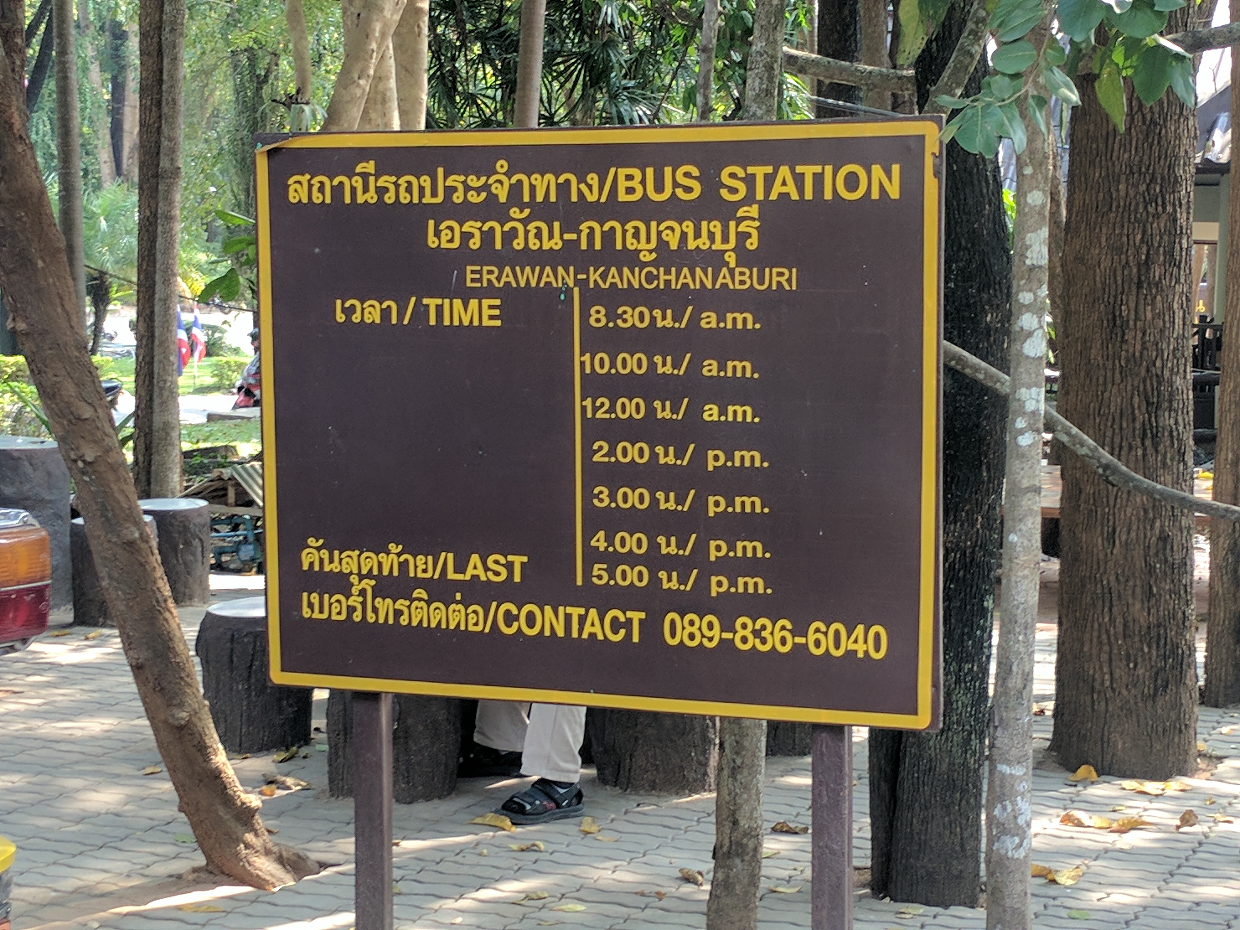 We took a bus from the central bus station in Kanchanaburi. Map. The ride costs 50 baht and it takes about two hours to reach the falls.