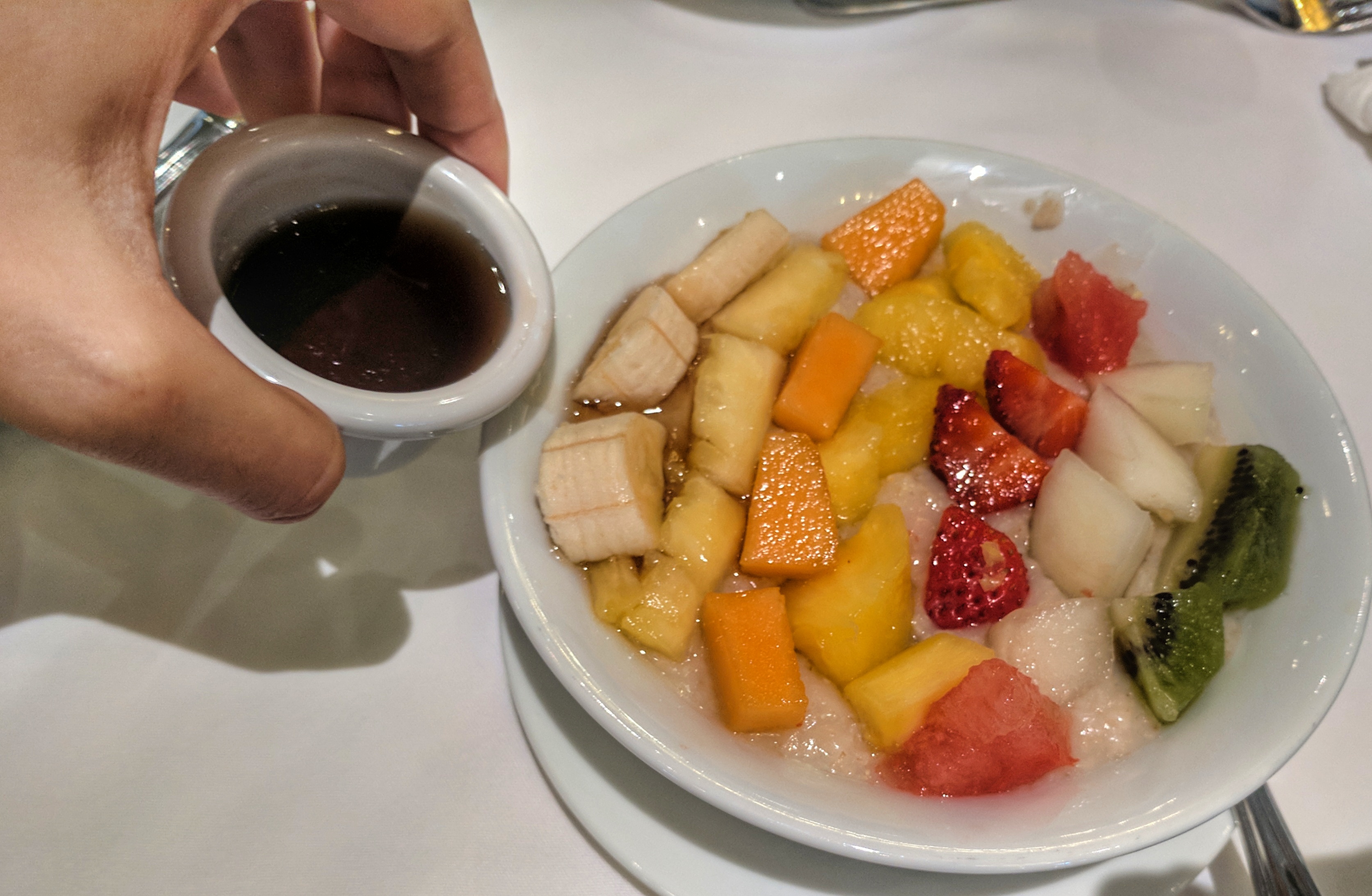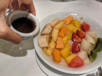 For breakfast, you can visit the buffet, the Irish restaurant or the fancier restaurant, and they all have great breakfast menus. We liked the fancy restaurant the best when it comes to breakfast. They have special dishes like Benedict pear with salmon and a cream cheese and salmon bagel. You can also ordered fruit, pancakes, oatmeal and more.
