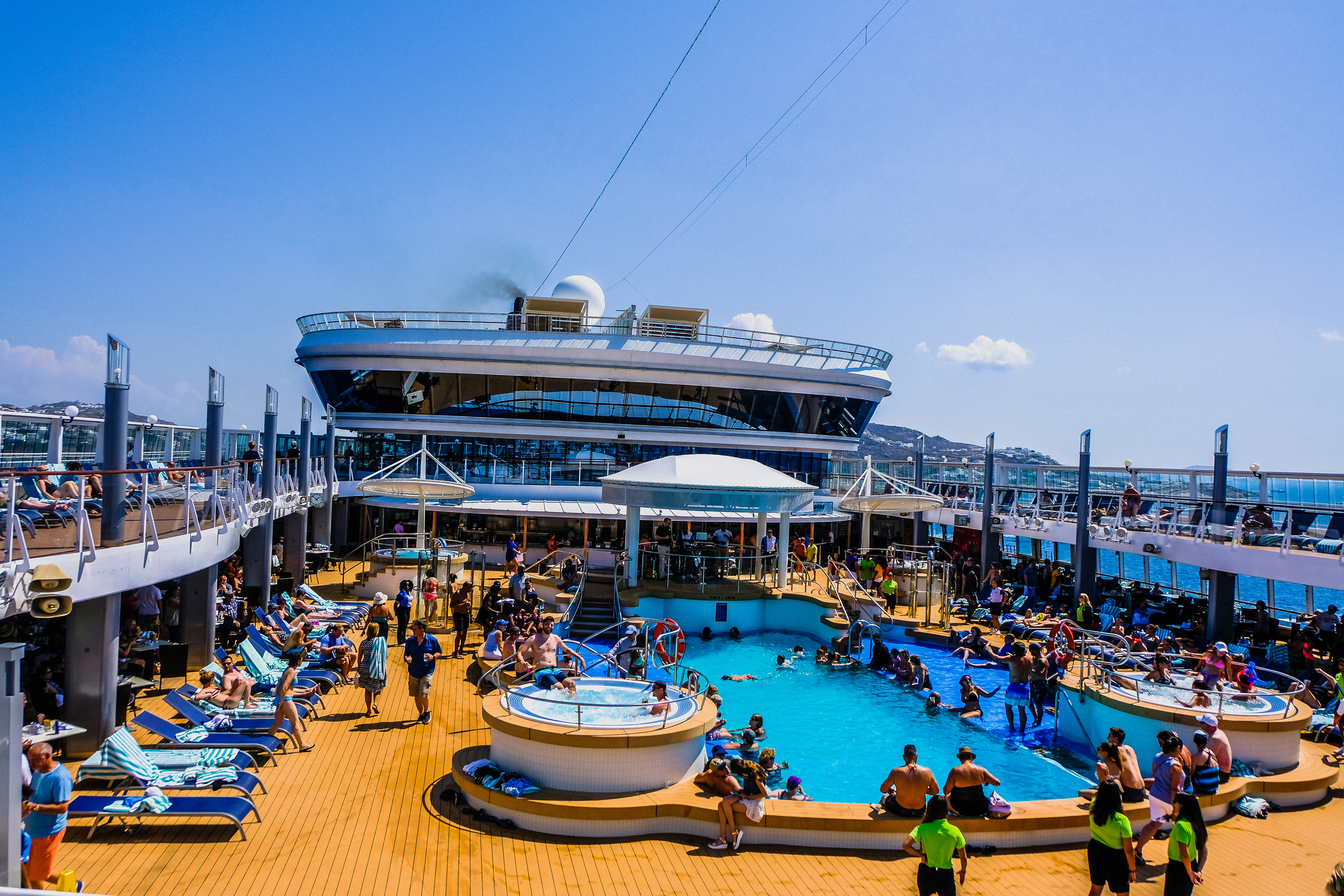 The pool area is really fun. There are a lot of comfortable beds, four jacuzzies, a pool and a food and bar area. We really liked sitting in the jacuzzi or on the beds and drinking a cocktail. Sometimes there were pool games or a DJ who played good music. It got crowded at times, so I think it would have bee nice if there was another pool. Each day you’re given the schedule for tomorrow. Those who choose not to get off the ship at stops has a ton of activities such as games, movies and more.