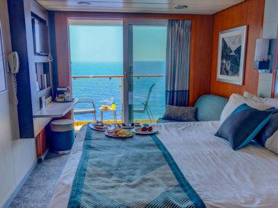 We booked the cruise seven months in advance (In November, booking it for June 2018), and chose the regular room (Room without a window which costs around 1060 dollars per person), a few months later we received a mail inviting us to take part in an auction for an upgraded room with a double bed and a balcony over the sea, definitely a substantial upgrade – we decided to try our luck and offered 660 dollars and after about a month received a confirmation that we had won.