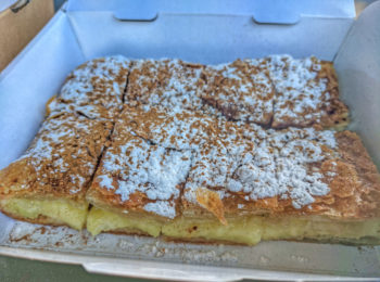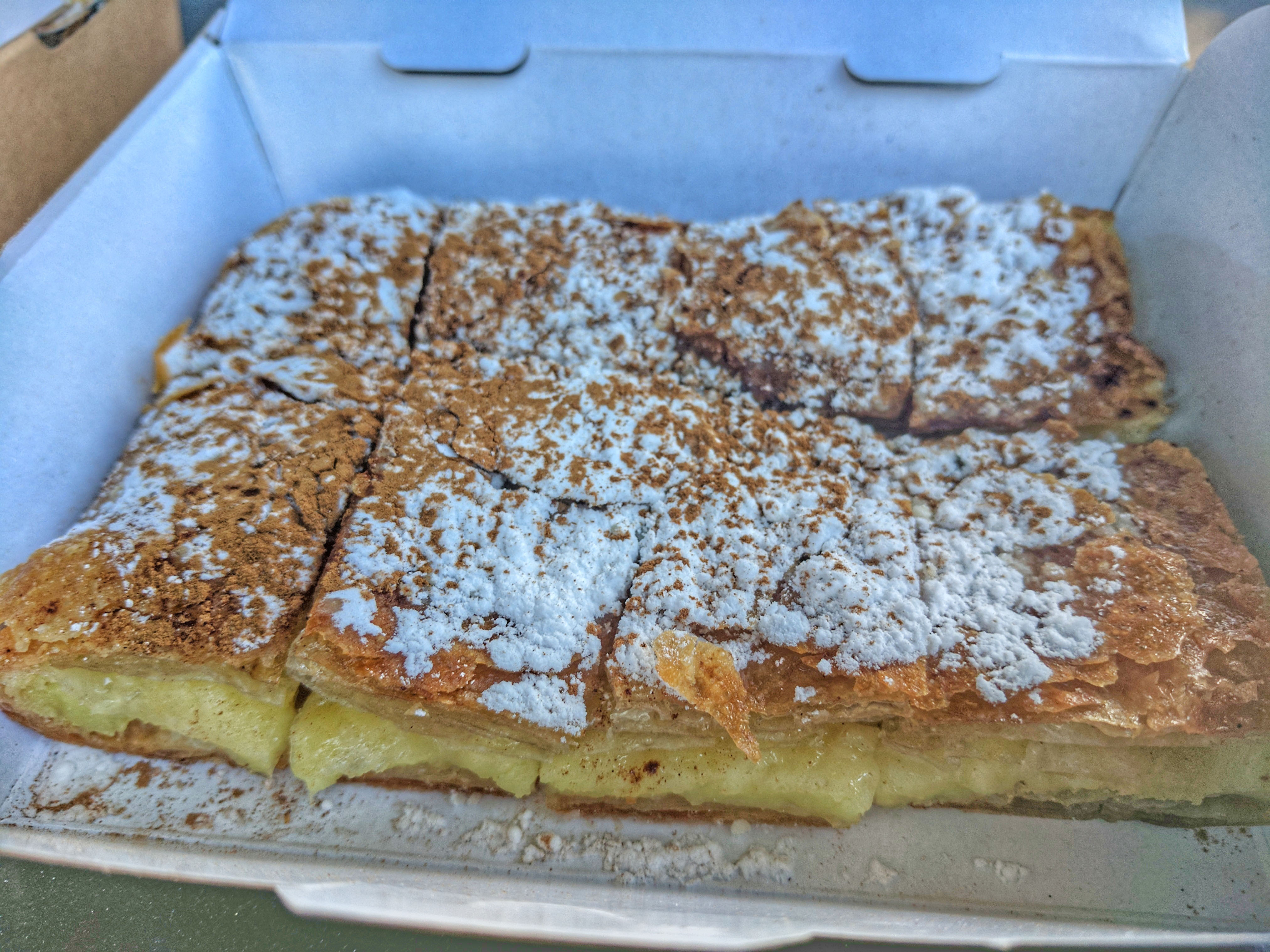 On the way back, we stopped for traditional Greek food, a type of Bourekas (Only much tastier in my opinion) that is sweet or savory and is one of the tastiest foods there are. We tried it on the food tour as well – It’s served fresh, straight out of the oven, and is really crunchy and excellent. It’s highly addictive. It was a nice stop for recharging your batteries so you can keep riding. I liked that the tour included a stop to try local cuisine, which was unexpected.