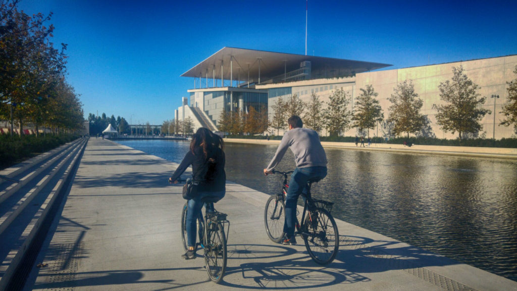 We stopped occasionally and Dimitris told us of the places we passed along the way. When we got to the (very impressive) opera house, we locked our bikes away and went up to a vantage point off of the building itself. There’s a free ice-skating arena there and you can even sign up online for free ice-skating lessons (A great kid’s attraction).