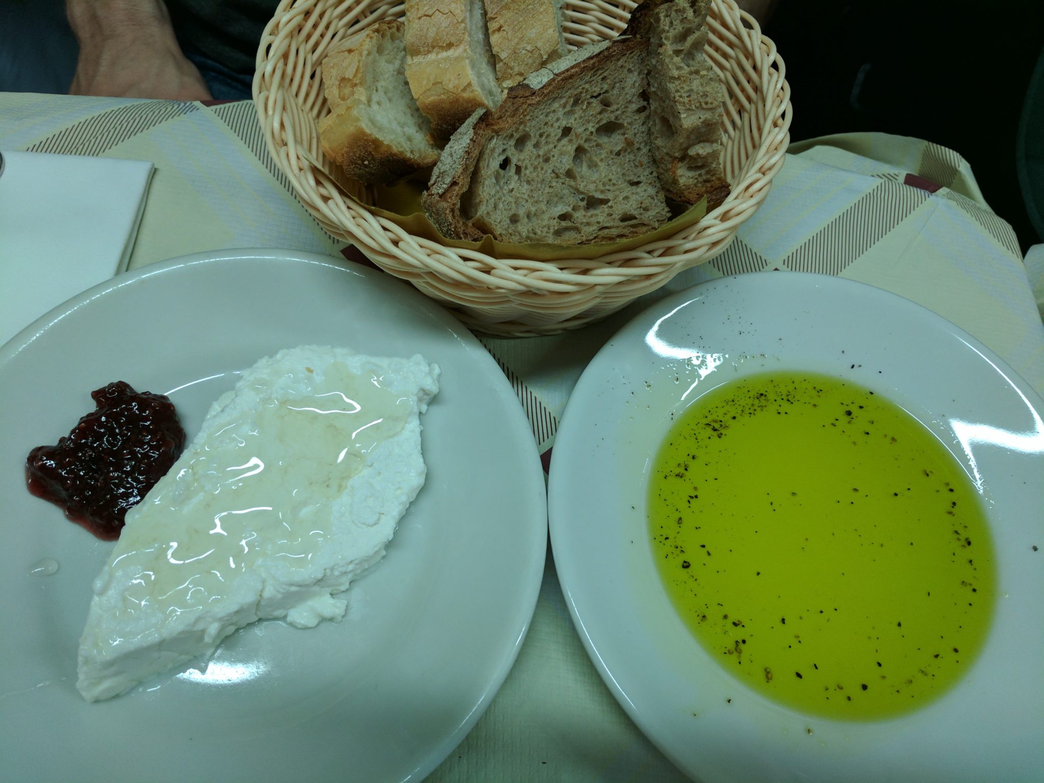 As you can figure we decided to go to the other place, and I was so happy with our decision. We ordered some appetizers, a ricotta cheese with jam and local olive oil with bread. They were both so good, and the ricotta was the creamiest & best I’ve ever had.