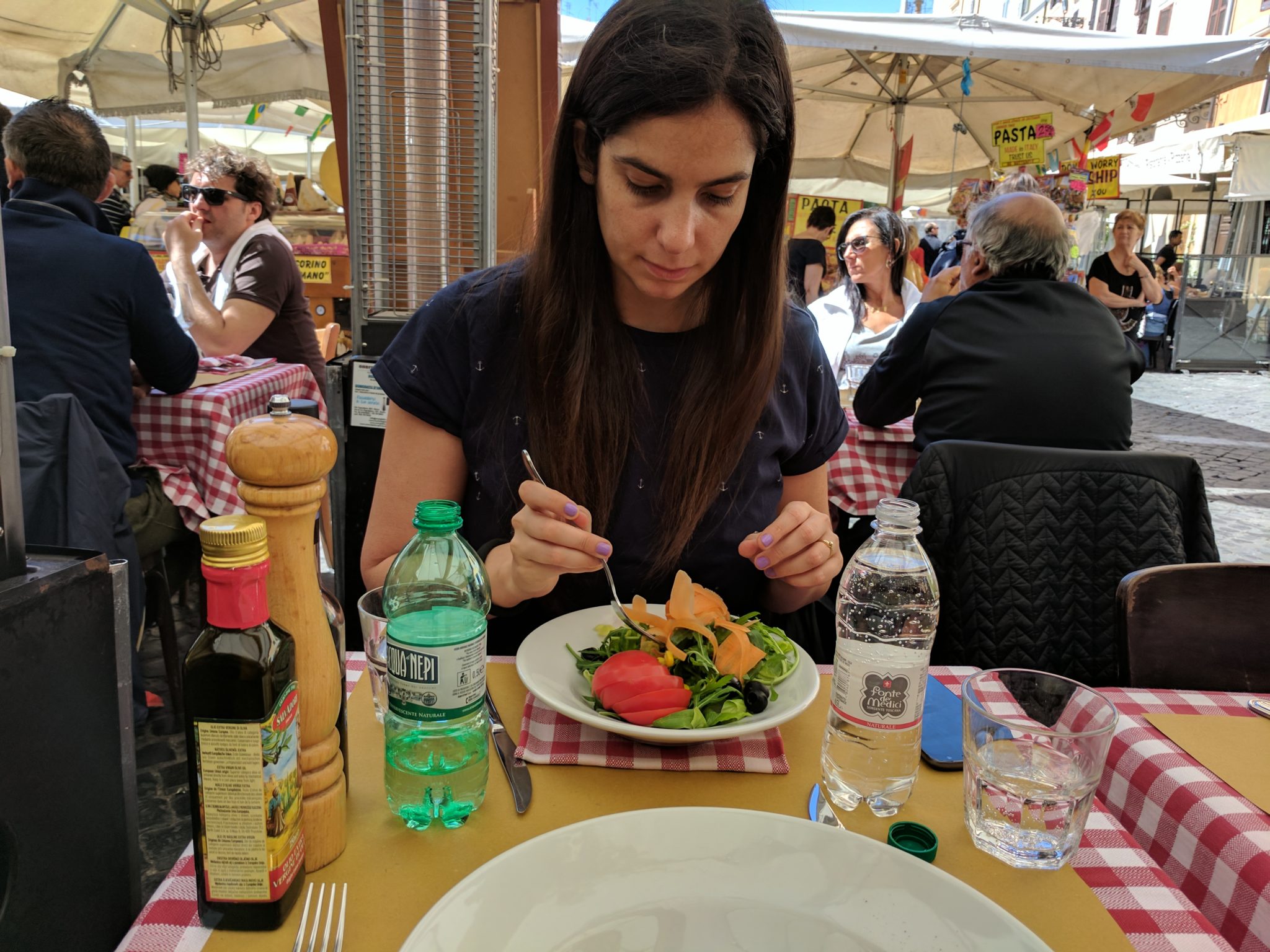 I just ordered some salad because I wasn’t feeling too hungry, and Roman ordered some Carbonara (he’s always hungry.)