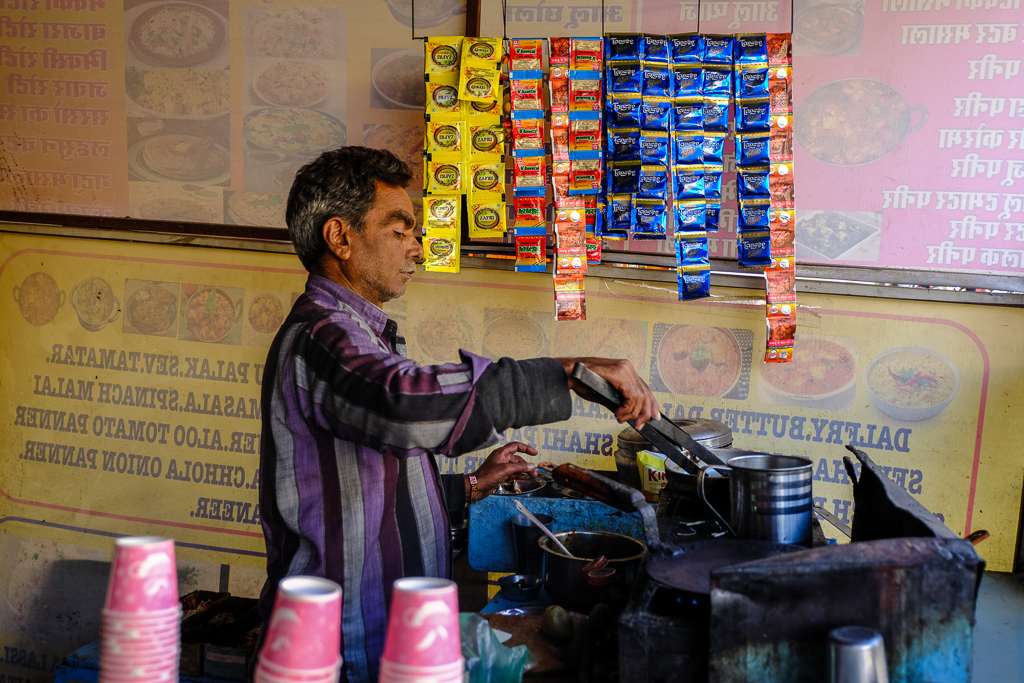 We really like street food and the truth is that we found it a bit difficult to find restaurants for locals in Pushkar, as it is quite touristic, but somehow, we found an amazing place where we ate twice. There’s someone there who makes food on the spot on a stove by the tables. The food is super delicious and very cheap. If you do not shy away from authentic local restaurants, then I’m sure you’ll be really excited about this place. (Map – adjacent to this stand)