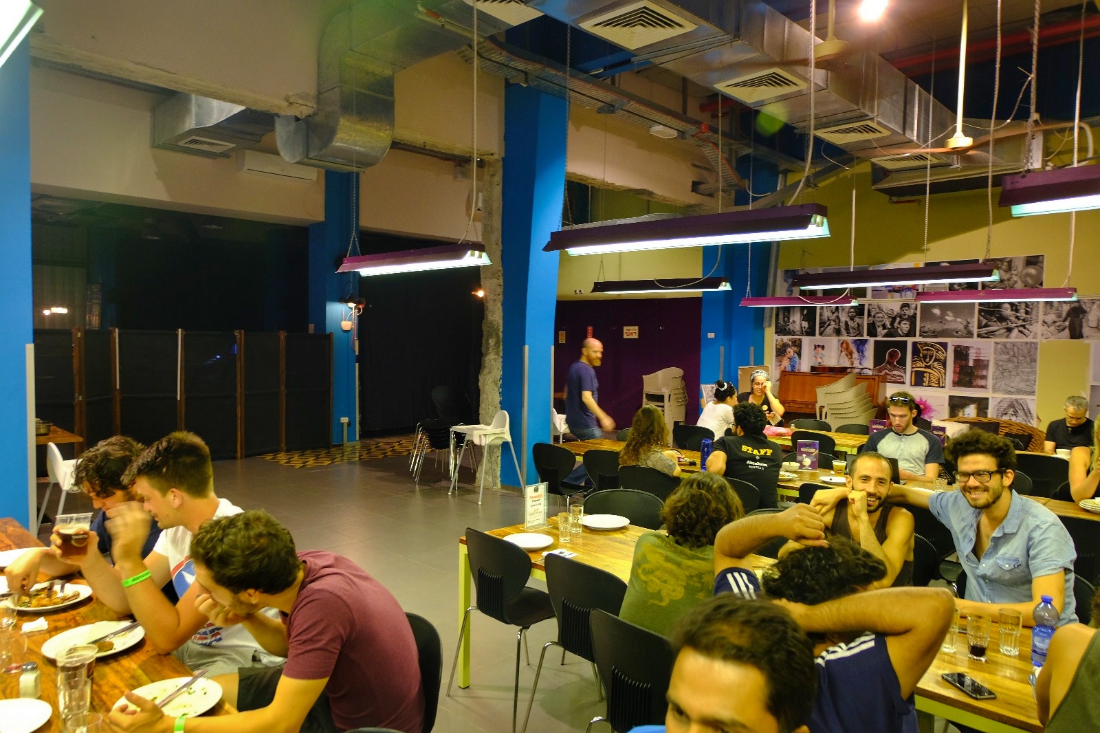 We signed up for Friday dinner at the reception (Which costs 50 NIS for hostel guests, or 70 NIS otherwise). Afterwards we sat on the balcony with a beer and at 19:30 came down to the 1st floor for dinner. There are long tables and actually almost all were full.