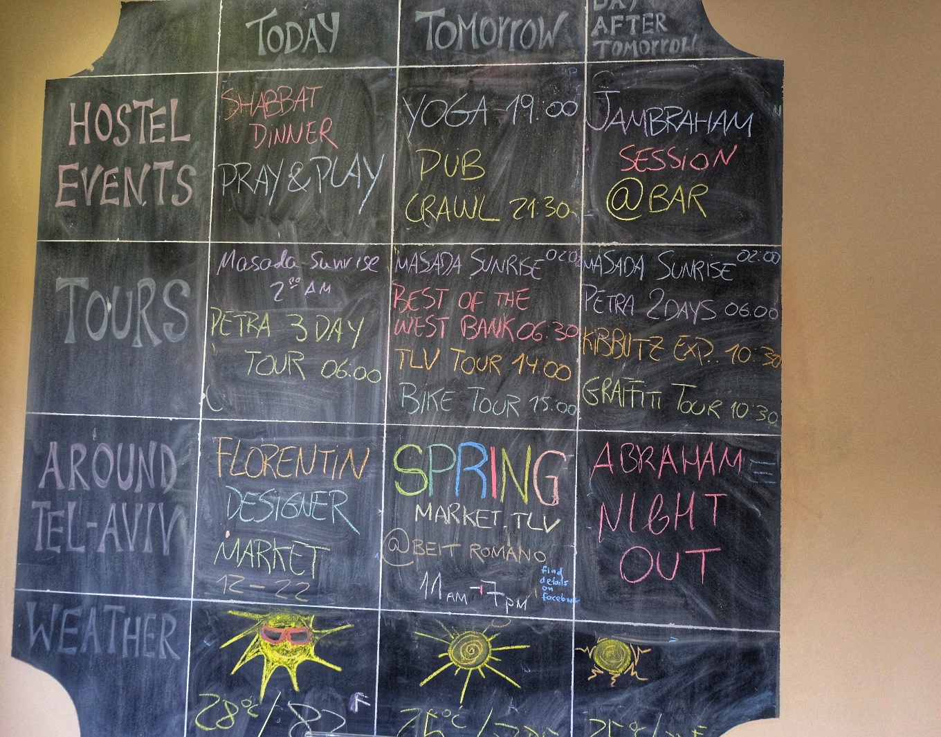 I’ve become acquainted with the Abraham Hostel chain slightly over a year ago, at a blogger convention in Jerusalem. They held a bar crawl, originating at their hostel, and I was already excited about them. I then found out they had a hostel right next to my house in Tel Aviv, which hosts many events and has working room for people who want to bring their laptop and work from there.