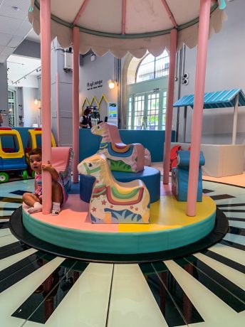 Although Maya is a bit too small (19-months-old) and the recommendation is for ages 3+, she really enjoys it and I find things to do with her every time. The price there is really worth it. For a child under the age of three the cost is 3 euros and for a child over that age it is 6 euros. Adults do not pay.