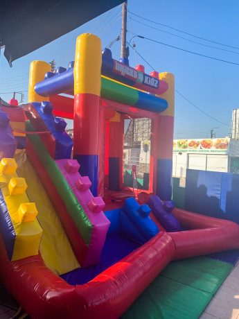 Upstairs there is a cute restaurant where some of the food is in the shape of a… Lego ? Lego hamburger bun (the color of the bun isn’t a food color but natural) and the truth is that it is very tasty. There are also nuggets and chips, ice cream, and coffee. Outside there is a large trampoline in the shape of a castle.