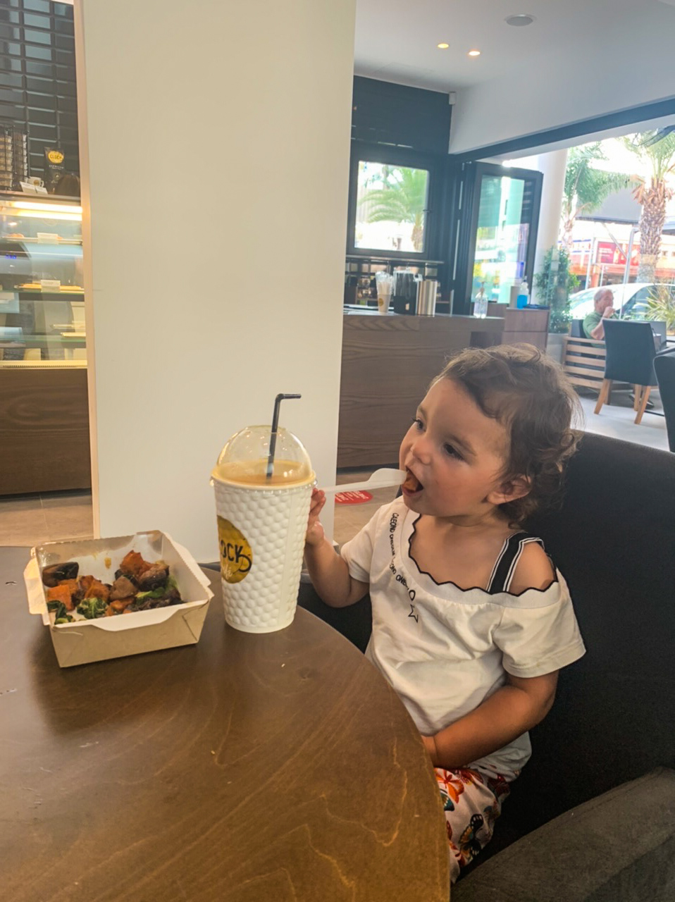 We ordered a dish from the breakfast there, wine, coffee, a tagliatelle pasta dish with lemon and shrimp (which the girls really liked) and a seabass fish dish. The bill was 63 euros. Keep in mind that the service there was very slow, hopefully it’s just because the restaurant is new and that it will improve. This is a great option to spend half an hour – an hour with the kids and them to eat delicious food, especially on days when you are looking for an indoor activity in Limassol.