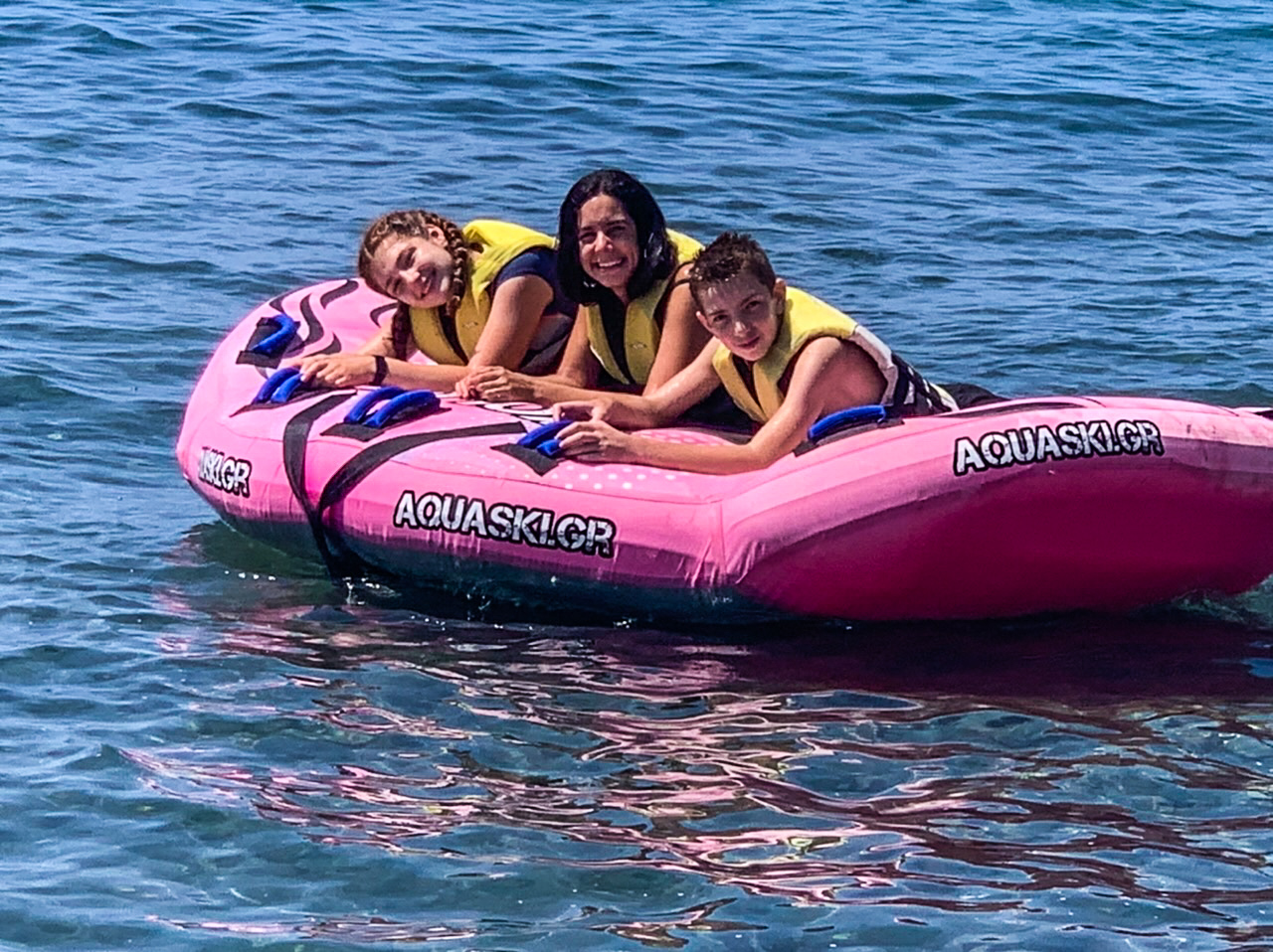 We did the water sports near the Atlantica Miramare Hotel where they also stayed. Water sports are suitable for older children but if you come with the little ones there are also speed boats or pedals that you can do with them.