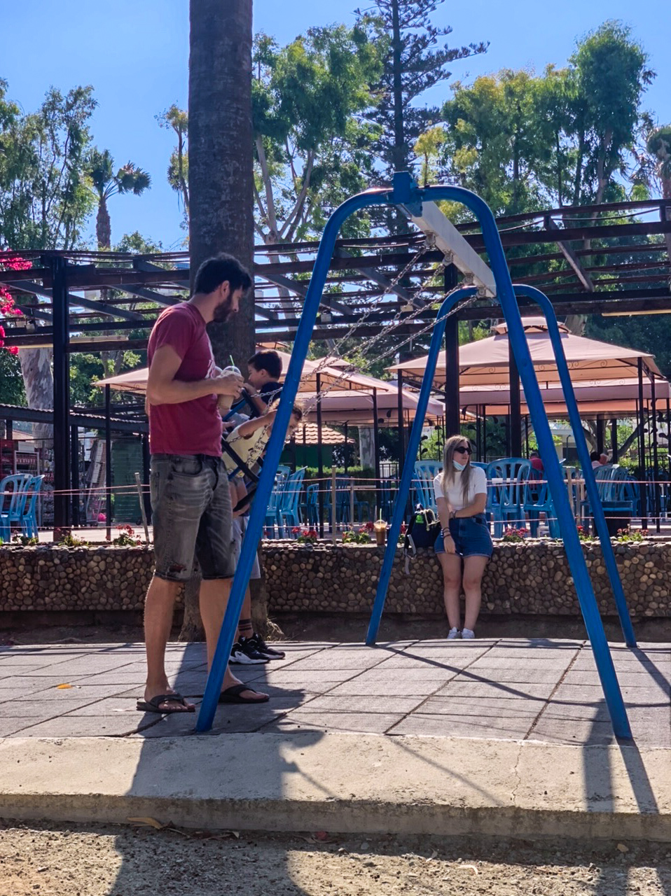 We really like going to Melina merkouri cafe in the Mesa Gitonia area. It is a cafe restaurant with outdoor seating, it has lawns and some games for children and in addition there is a playground and a small forest to walk around. The Cypriot pizza is recommended there for both adults and children.