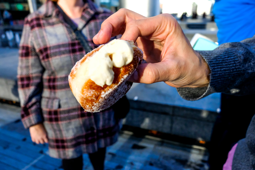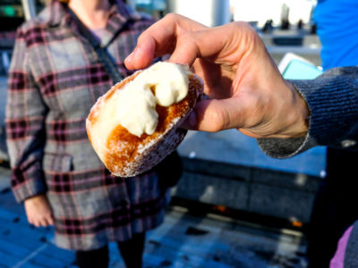 We then continued to another place where Lucy told us it’s a highly successful bread stall, offering a cheese stick with olives that’s considered excellent. In front of this stall is a famous donut stall which, according to Lucy, has the best donuts.