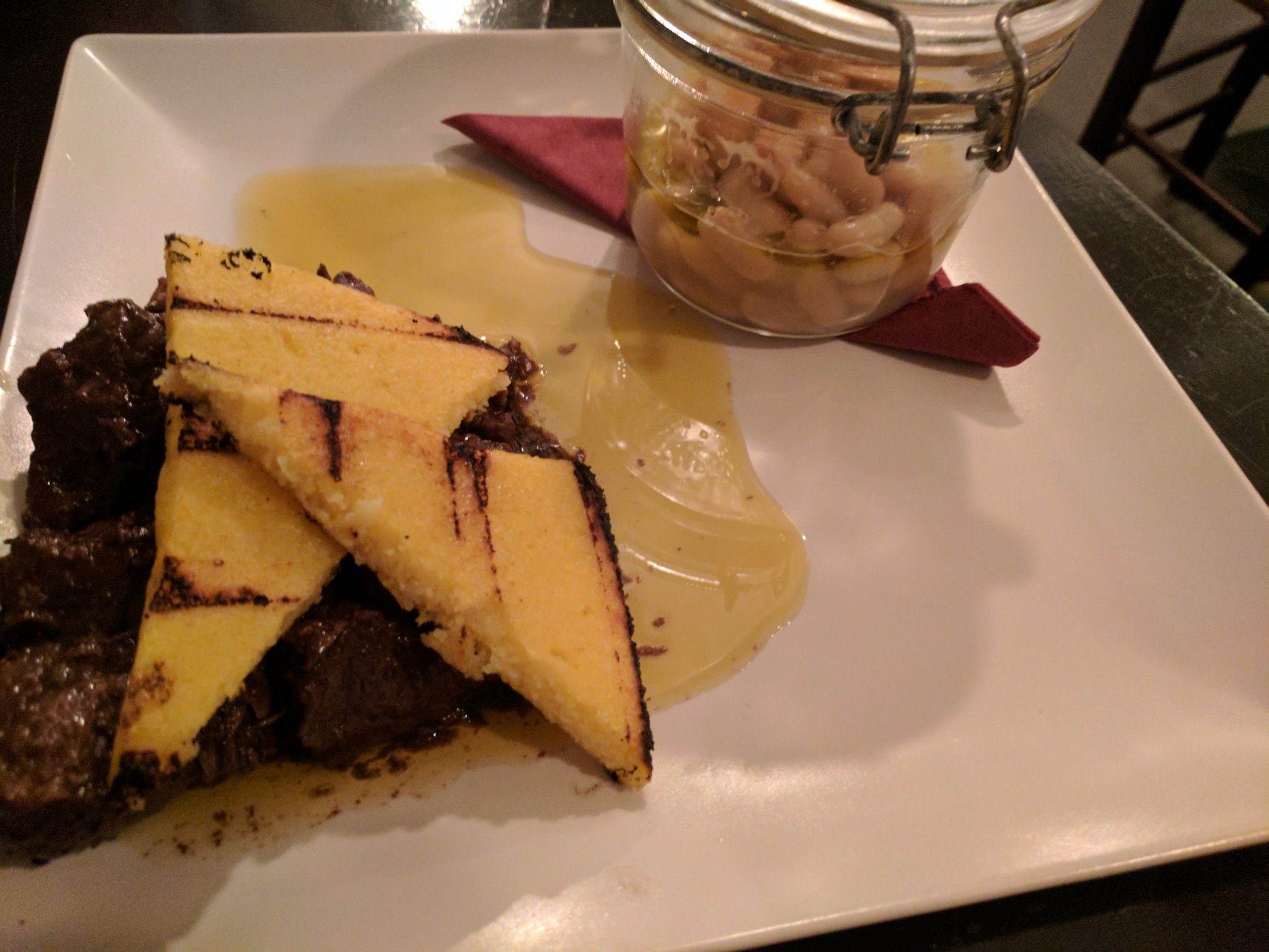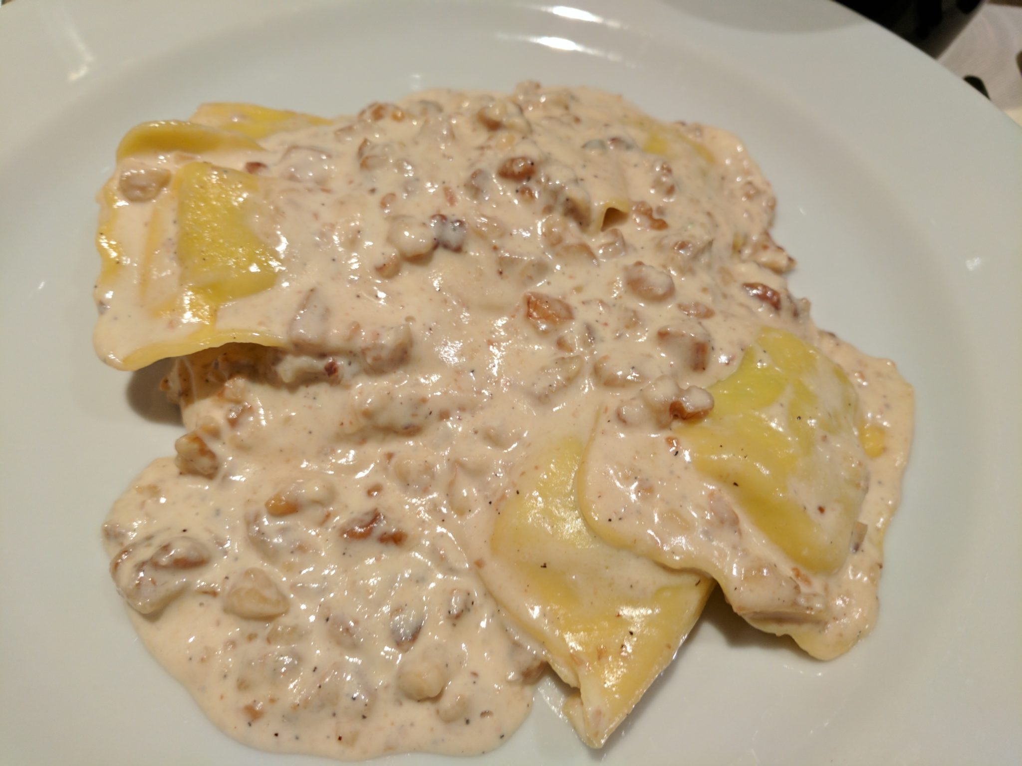 I got the ricotta ravioli with vongole, which is a nut sauce. It was so filling, that Roman had only a few bites of the polenta until his fork dropped. Trust me, this does not happen very often ?